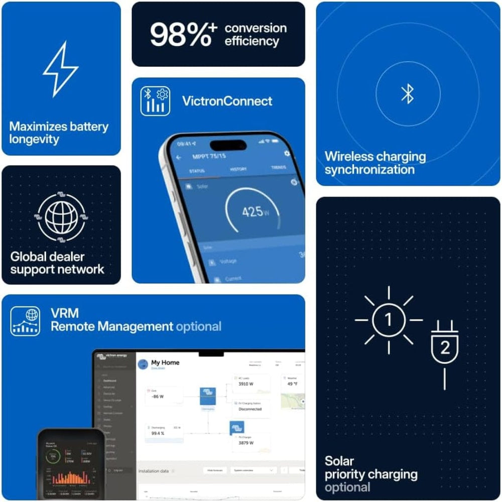 - Connectivity: Integrated Bluetooth Smart (VictronConnect app)