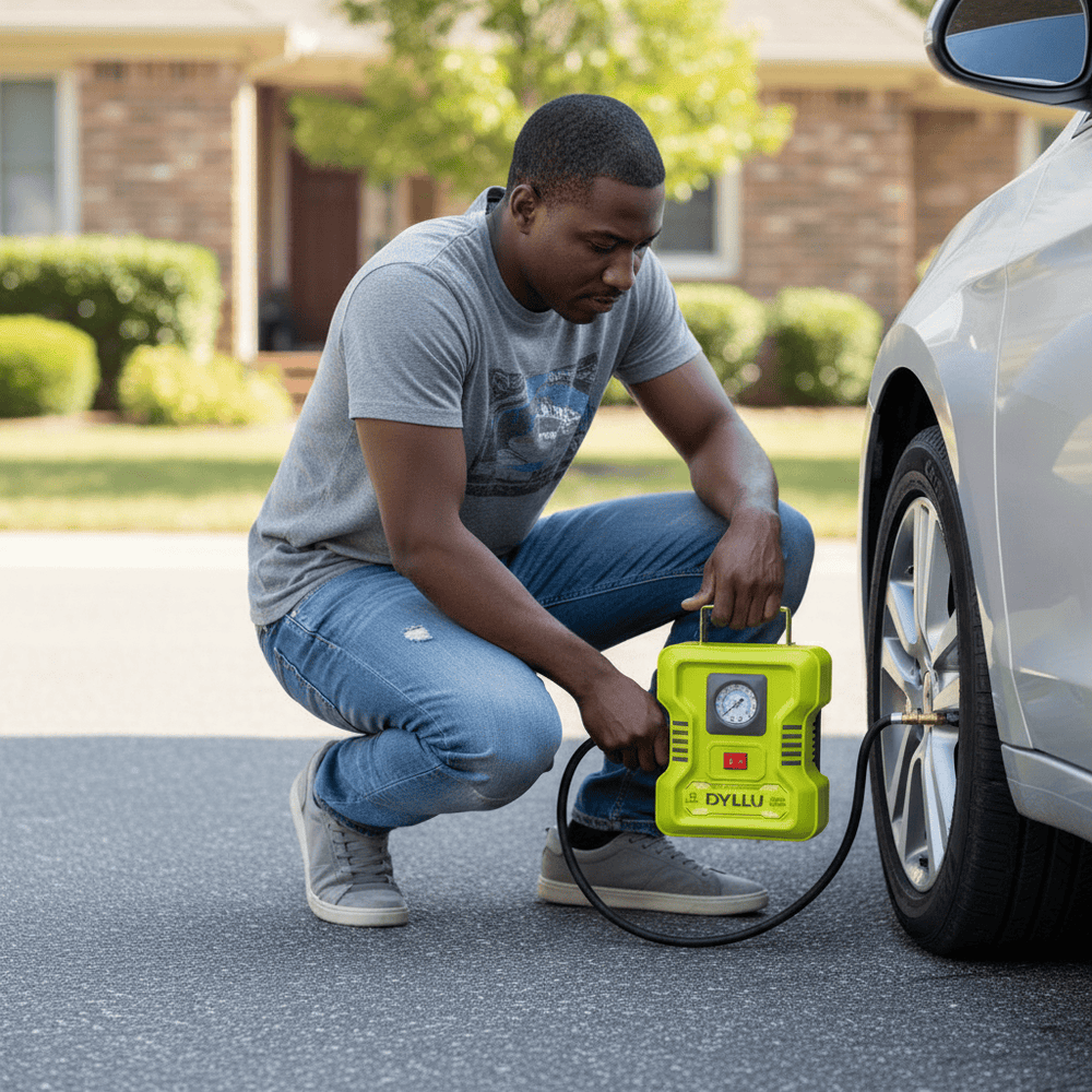 The Dyllu 12V Cordless Auto Air Compressor delivers fast and efficient inflation for vehicles, sports equipment, and air beds. Its compact and portable design makes it ideal for on-the-go use.