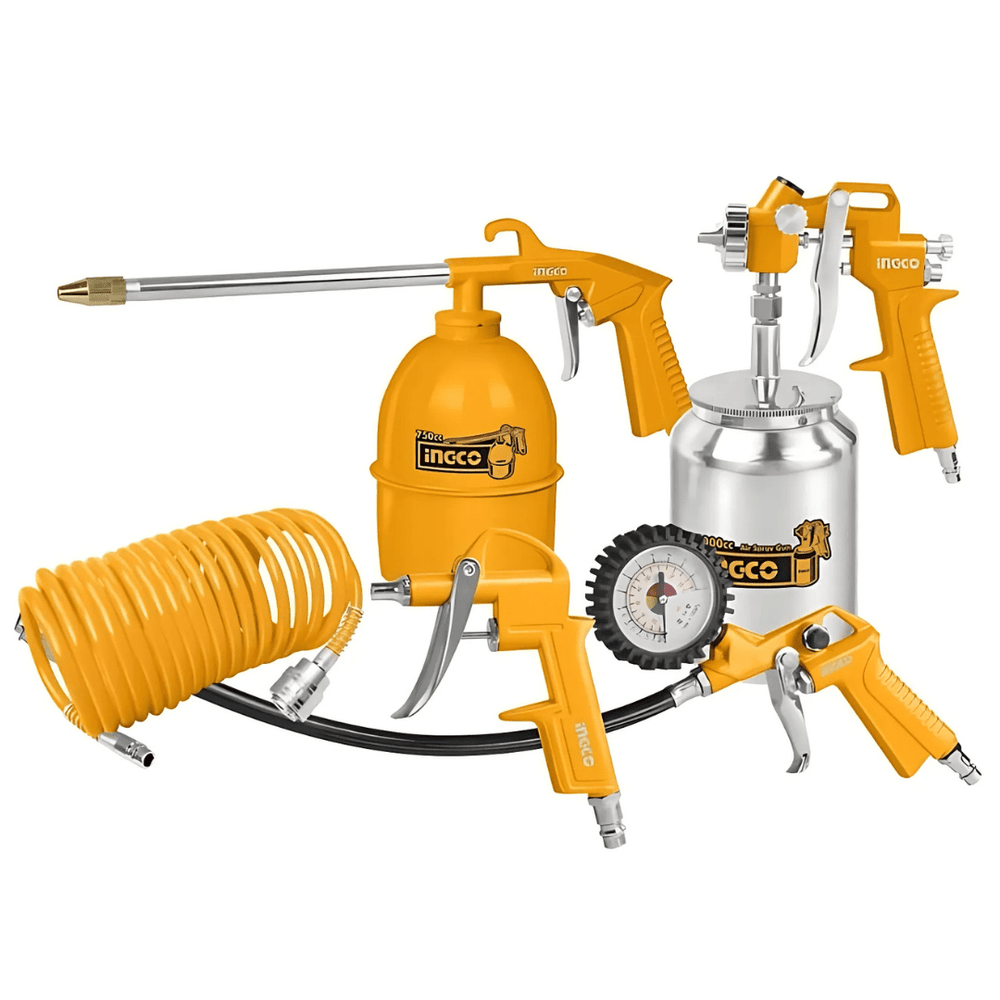 Get more done with the Ingco 5 Pieces Set Air Tools - AKT0053, an essential combo for any garage, workshop, or industrial setting. This comprehensive set includes the most commonly used air tools designed for versatility, durability, and high performance. From inflation to cleaning, painting, and pressure control, this kit has you covered for all your pneumatic tasks.