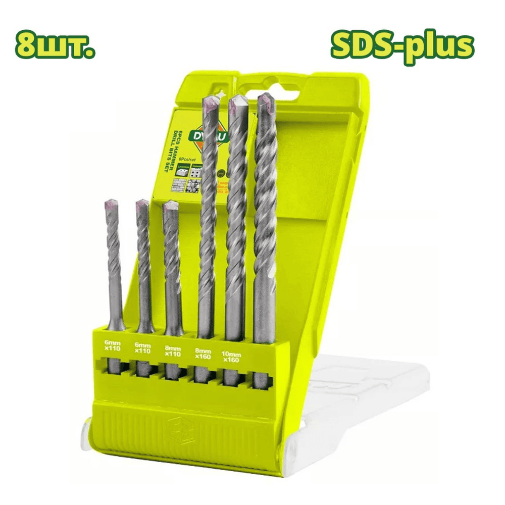 A professional 6-piece SDS plus hammer drill bit set engineered for fast, efficient drilling in concrete, brick, and masonry. This set includes a practical range of diameters (6-12mm) and lengths (110-160mm) to handle various anchoring and installation tasks. Designed for use with rotary hammer drills, these bits deliver reliable performance and durability.