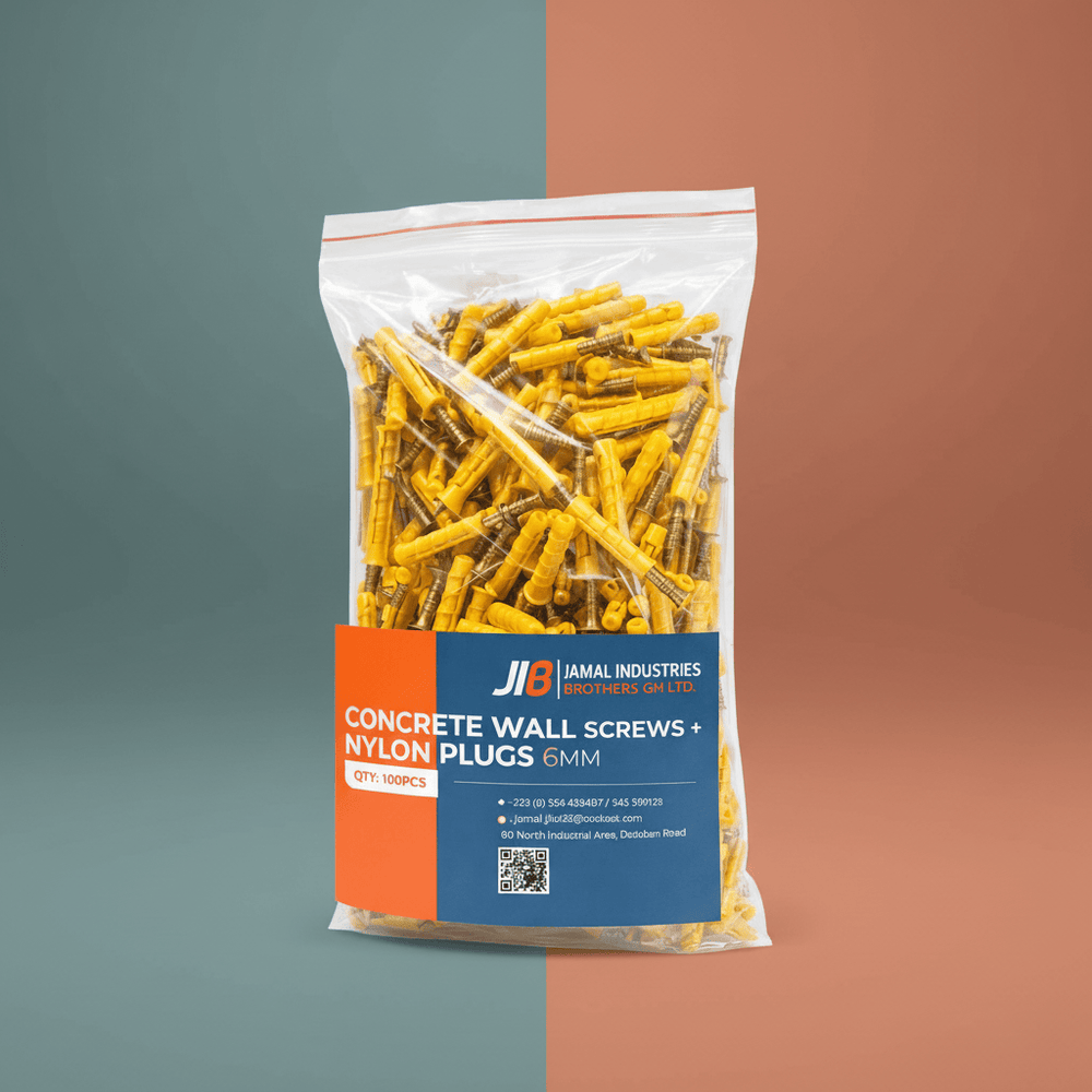 JIB Nylon Plug with Screws is designed for reliable medium-duty fixings in walls and ceilings. The 6 mm diameter plug provides secure anchoring in concrete, brick, and masonry, making it suitable for a wide range of interior installations.