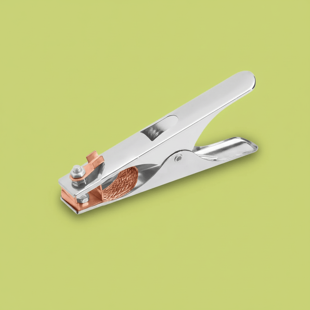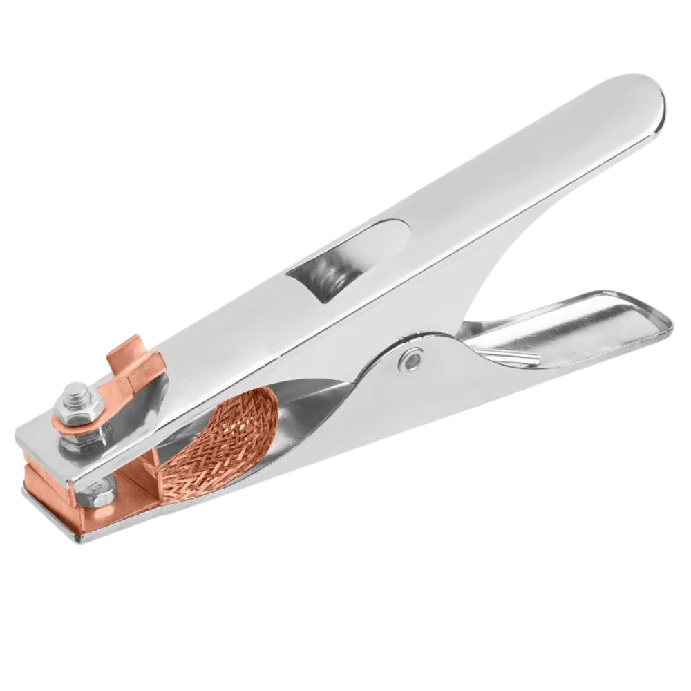 A heavy-duty welding ground clamp engineered for reliable conductivity and secure connection in demanding welding environments. Rated for 300A current with a wide 60mm jaw opening, it ensures optimal grounding on various workpieces. The chromed steel construction provides durability and corrosion resistance for long-lasting performance.