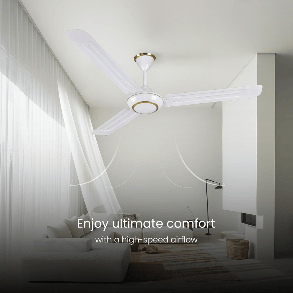 Experience exceptional comfort and energy efficiency with the Indoasian WINDASIA 1400mm Ceiling Fan. This 5-star BEE rated fan combines a powerful 240 RPM copper motor with maximum angled blades for superior air delivery. Designed for reliability and performance, it features protection against voltage fluctuations while delivering optimal airflow for large spaces. The elegant white finish and aesthetic design make it perfect for both residential and commercial applications.