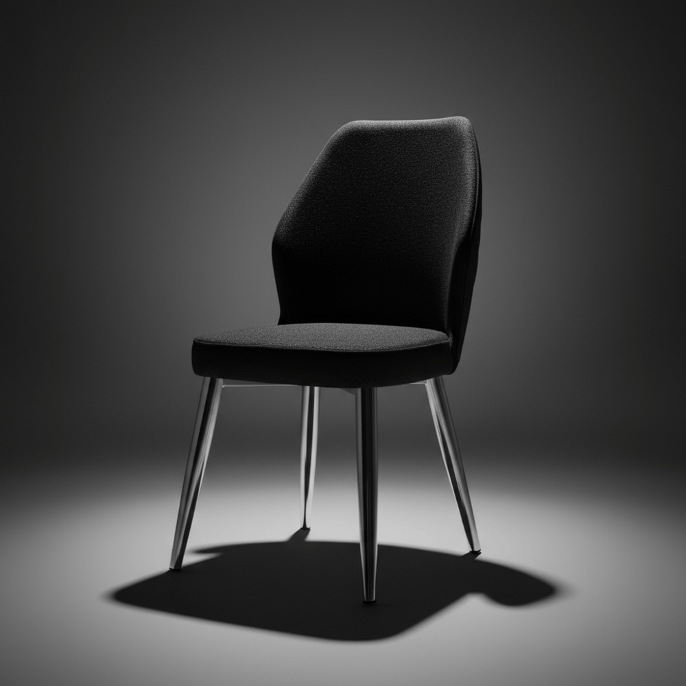 - Chair Upholstery: Dark fabric (charcoal/black)