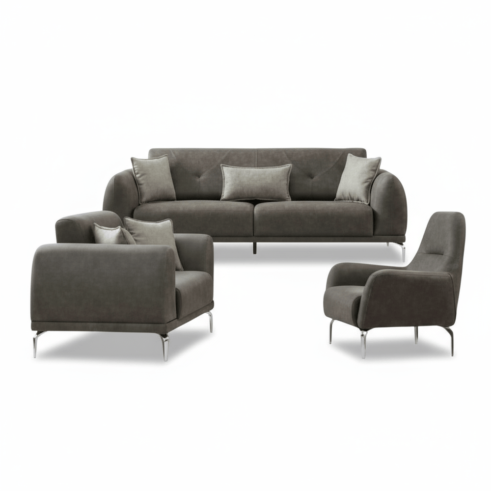 Complete your living space with the Pyramid Sofa Set, featuring a practical 3+3+1+1 configuration perfect for family living and entertaining. Upholstered in durable microfiber fabric that's both comfortable and easy to clean, this set combines everyday functionality with contemporary style. The versatile seating arrangement includes two spacious three-seaters and two accent chairs, providing ample space for relaxation and social gatherings.
