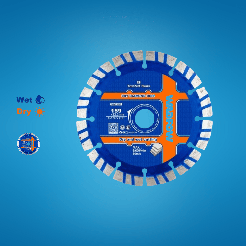 Achieve precise, efficient cuts in hard materials with the Wadfow Dry Diamond Disc. Designed for use with compatible angle grinders, this 159mm (6-1/4") disc features a durable diamond-edged blade with a 12mm width, ideal for cutting tile, concrete, stone, and masonry. The 22.2mm arbor ensures a secure fit, while the dry-cutting design allows for versatile use without water cooling. Perfect for construction, renovation, and DIY projects.