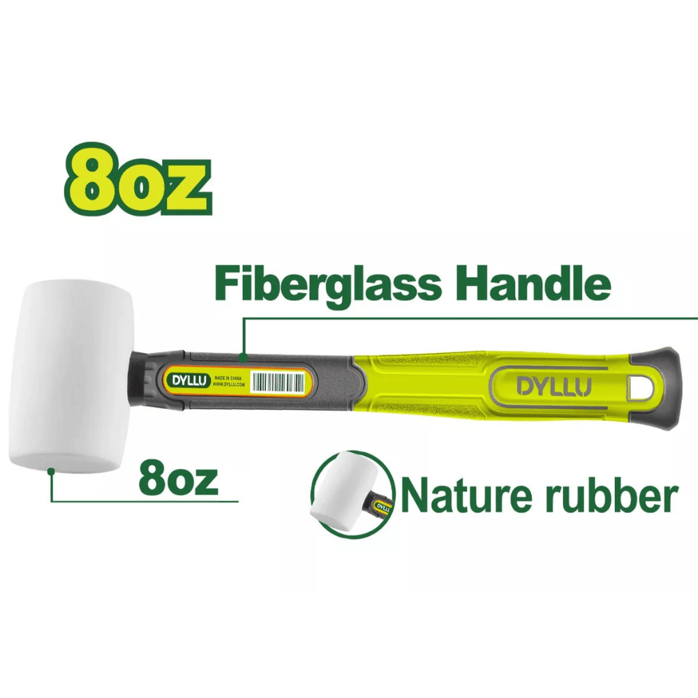 Handle delicate assembly and adjustment tasks with the Dyllu DTHM7303 Rubber Mallet. Featuring a soft, natural rubber head and a durable fiberglass handle, this 8oz mallet delivers controlled, non-marring strikes. Ideal for woodworking, automotive, and flooring work where surface protection is essential. The non-spark design ensures safe use in sensitive environments.