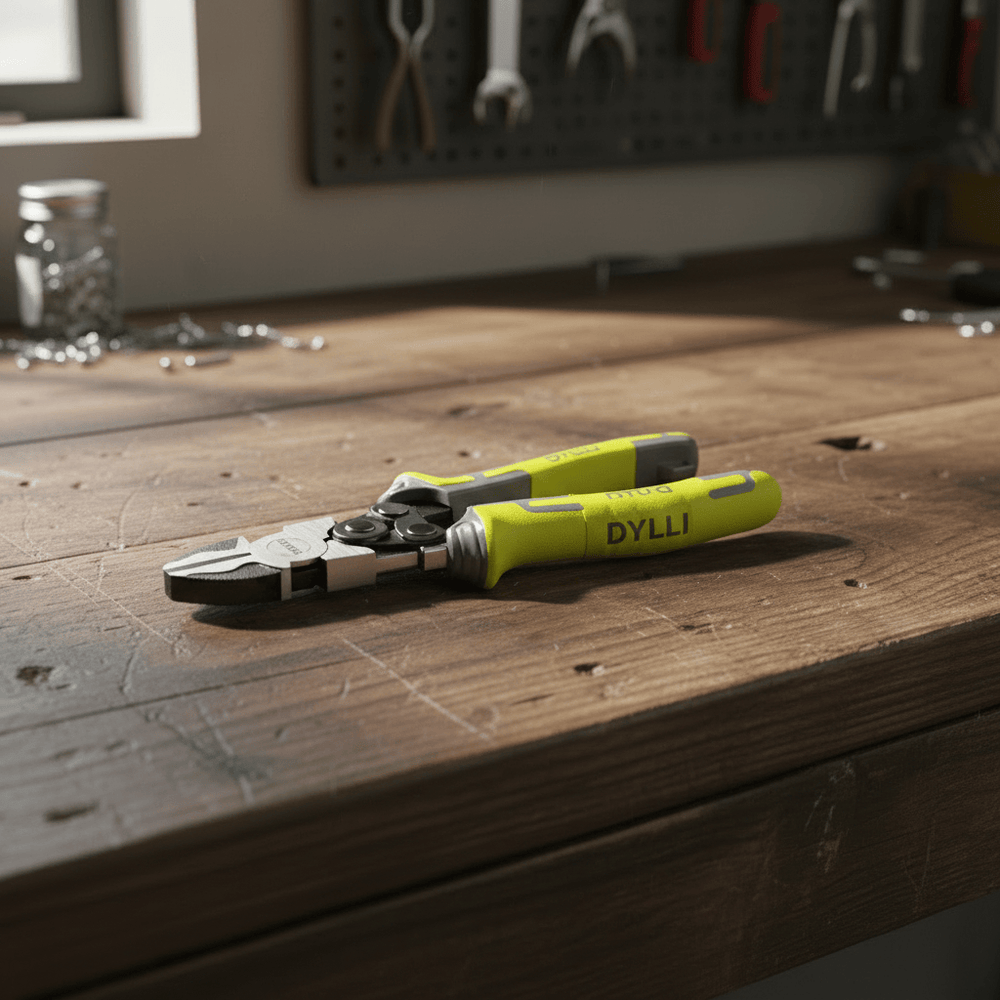 The Dyllu Compound Action Diagonal Cutting Pliers are engineered for high-efficiency cutting with reduced effort. Designed with a compound action mechanism, this tool delivers powerful, clean cuts while minimizing hand fatigue. Its durable Cr-V steel construction, comfortable two-color grip, and added deburring function make it a reliable choice for electrical work, metal cutting, and general workshop tasks.