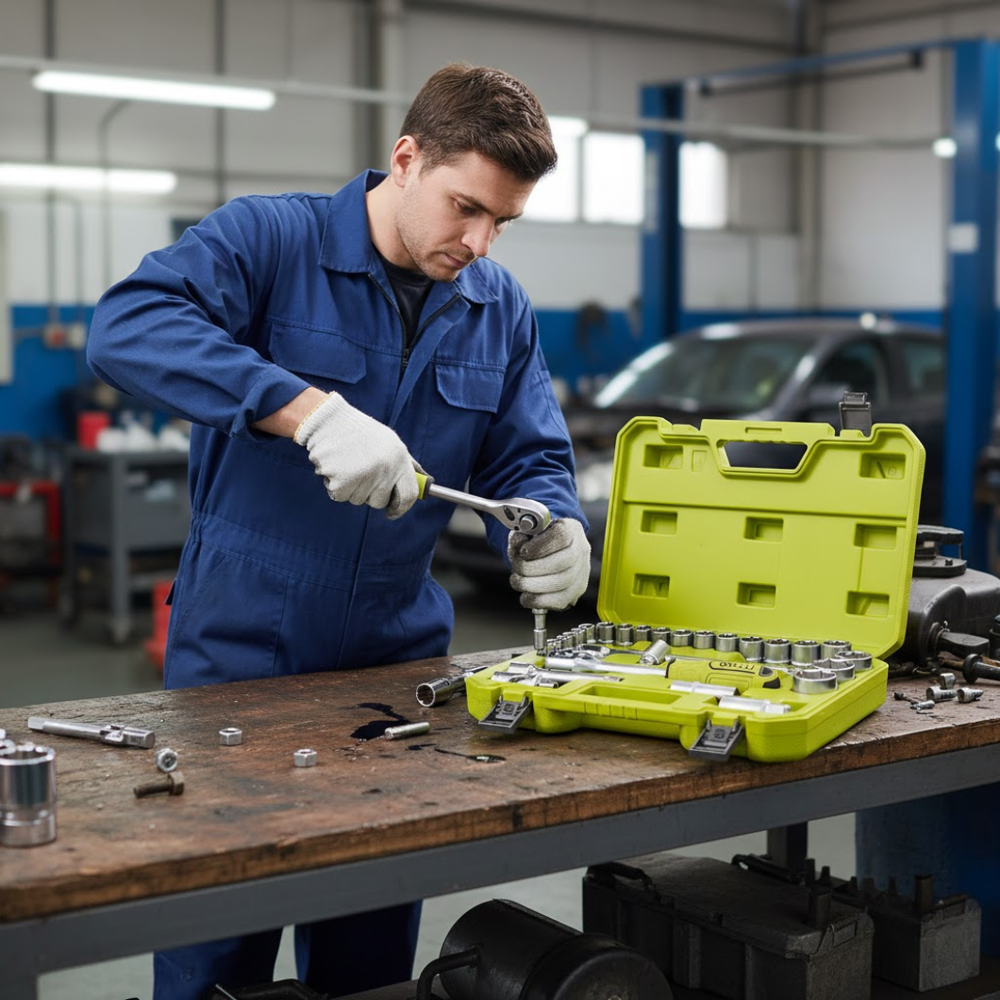 • Complete Accessory Set — Comes with extension bars, universal joint, spark-plug sockets, 3-way adapter / T-handle / sliding bar (depending on configuration) — expands usability beyond basic sockets