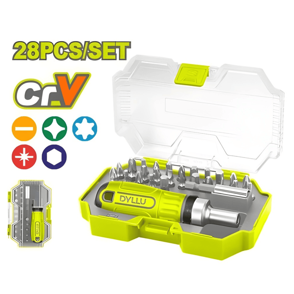 - Complete 28-Piece Kit: Includes 26 bits, a ratchet handle, and a magnetic holder