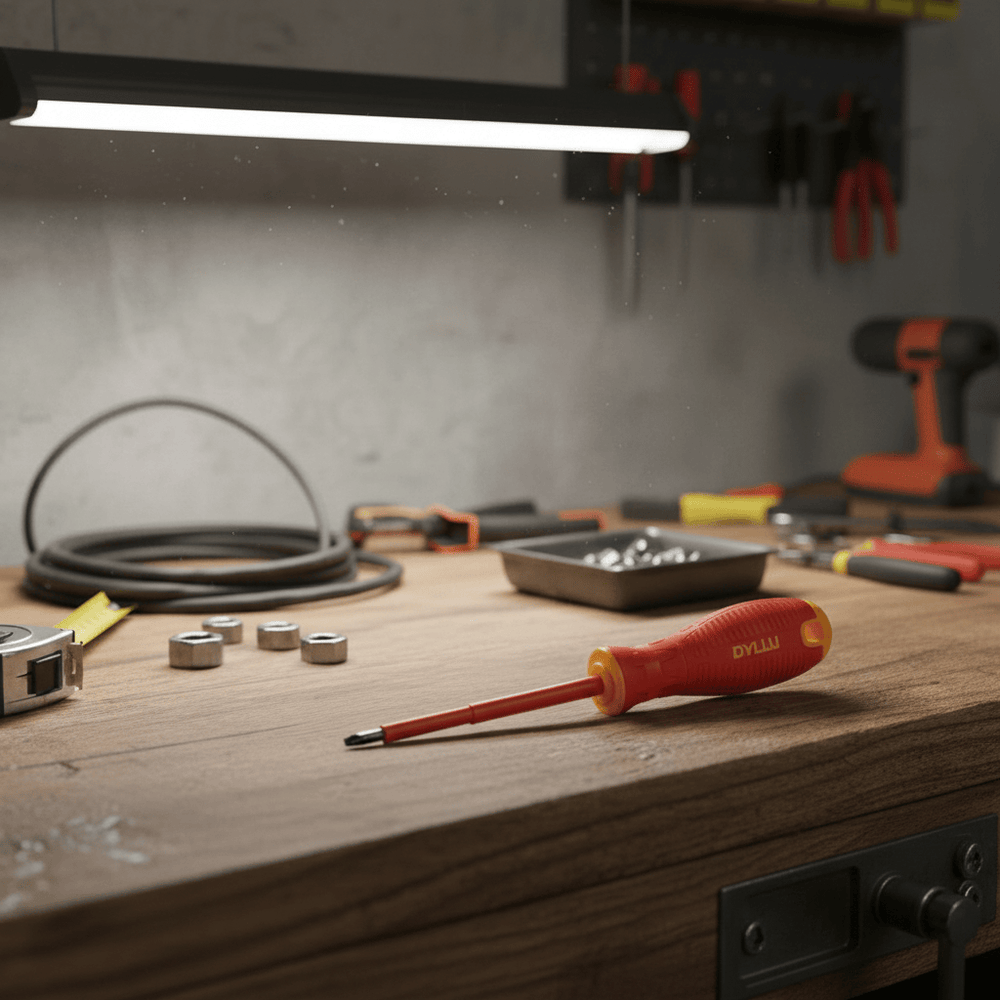 A compact insulated screwdriver designed for safe electrical installation and maintenance tasks. It offers reliable protection when working around live circuits, making it suitable for electricians, technicians, and everyday electrical work in workshops and on-site settings.
