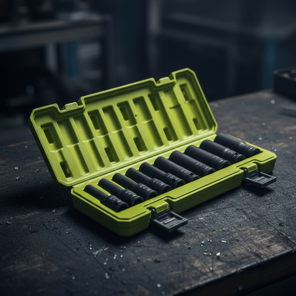 The Dyllu ½″ 10-Pieces Deep Impact Socket Set – DTMS2D02 provides durable, high-strength sockets for heavy-duty automotive and mechanical work. Engineered for precision and reliability, this set is ideal for professionals tackling tough fastening and loosening tasks with impact tools.