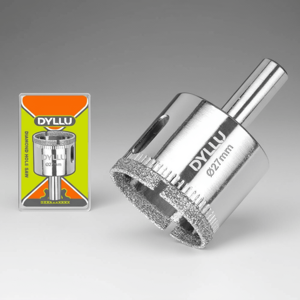 The Dyllu DTKJ7627 Diamond Hole Saw is designed for smooth, accurate drilling through hard materials such as ceramic tile, porcelain, marble, and glass. Its 27 mm cutting diameter makes it ideal for creating small, precise openings for fittings and installations while maintaining clean edges.
