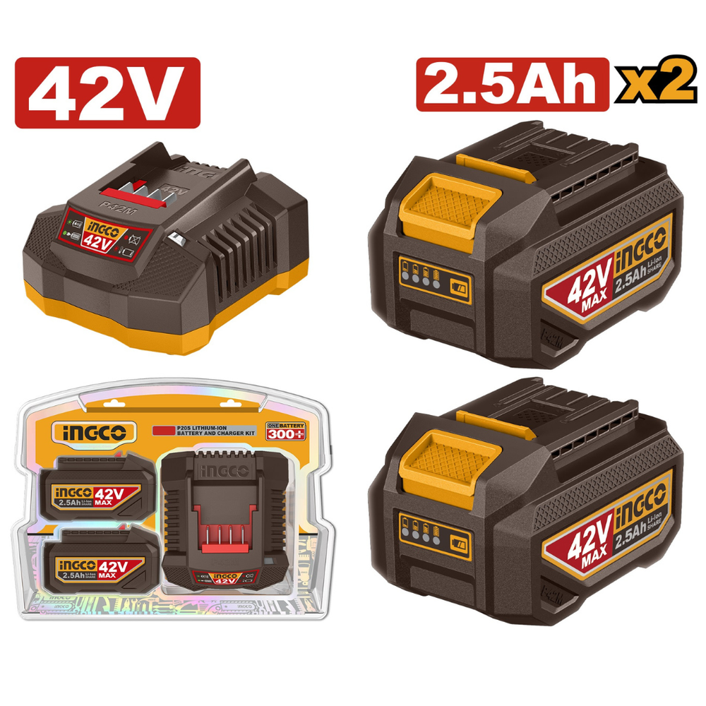 Ingco 42V 2.5Ah (2x) Lithium-Ion Battery & Charger Kit - FBCPM25221