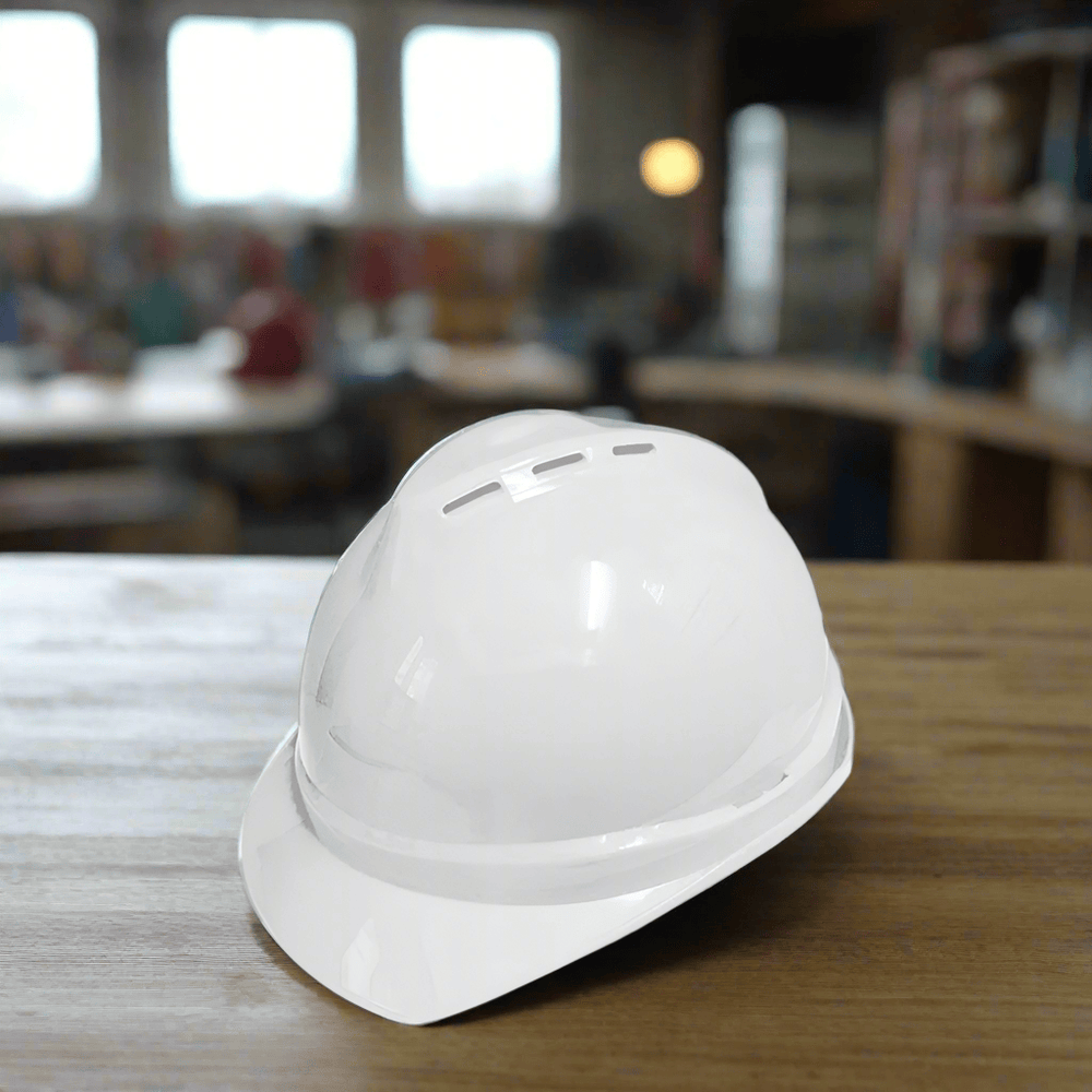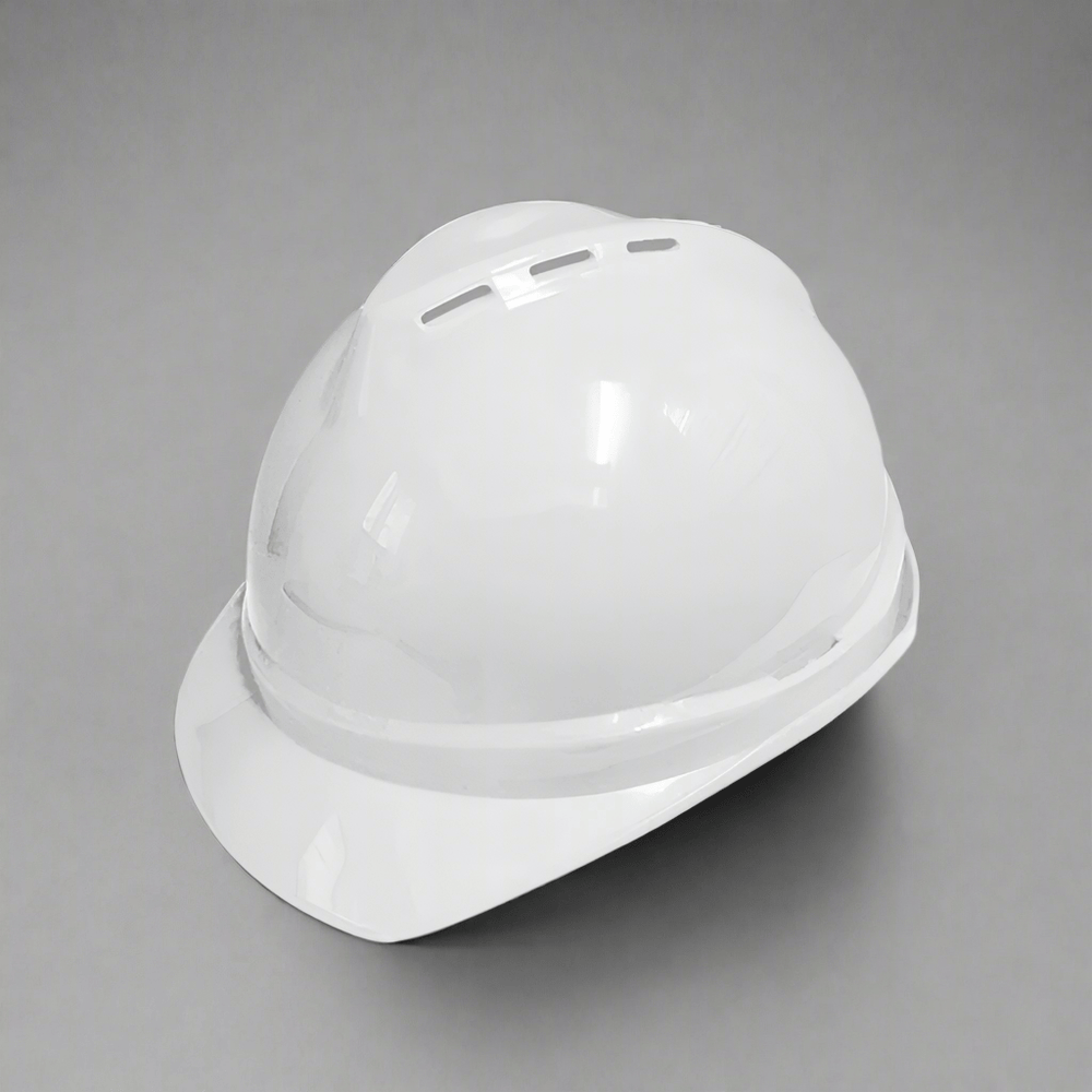 The Ingco White Safety Helmet with Fixed Chinstrap – HSH802 delivers dependable head protection for construction, industrial, and workshop environments. Built from 100% new PE material, it combines strength and lightweight comfort for extended use. Designed with a "V"-type reinforced top and a 6-point suspension system, it ensures superior impact resistance and stability. The adjustable ratchet knob allows a customized fit, while the ventilation vents and included chinstrap provide added comfort and security, making it an essential safety gear for professionals.