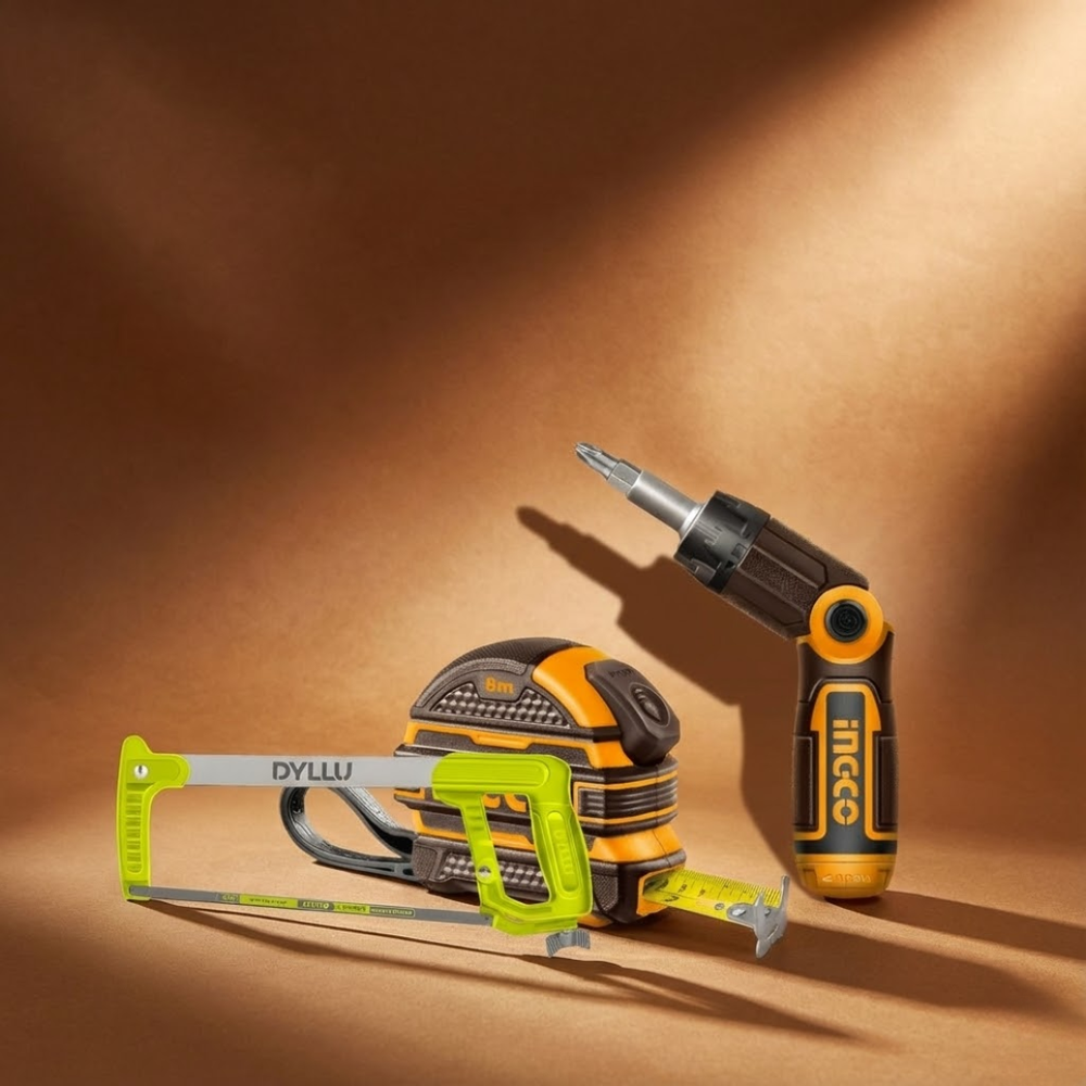 Tackle any repair, assembly, or workshop task with confidence using the Rapid Repair & Assembly Kit — a practical bundle of essential hand tools every homeowner, technician, or tradesperson should have on hand. This thoughtfully combined set includes a long-reach Ingco 8 m Steel Measuring Tape for precise measurements, a sturdy Dyllu 12″ Hacksaw Frame for cutting metal, PVC, and pipes, and a versatile Ingco 13-Piece Ratchet Screwdriver Set for fastening tasks of all kinds. Together, these tools make it easier and faster to measure, cut, tighten, and fix — whether you’re working on home upgrades, furniture assembly, plumbing, electrical installations, or general DIY projects.