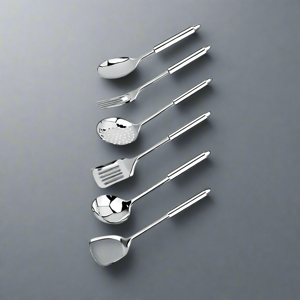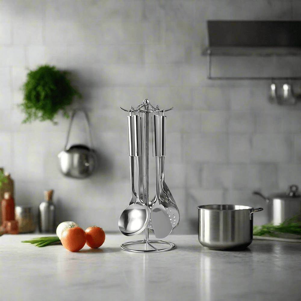 Upgrade your cooking essentials with this premium 7-piece stainless steel kitchenware set. Crafted from durable 201 stainless steel, it combines strength, style, and convenience for everyday use. The set includes all the key tools needed for cooking and serving, neatly organized with a storage rack to keep your kitchen tidy.