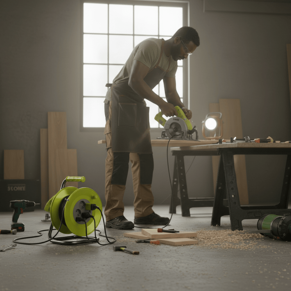 The Dyllu 25m Extension Reel - DTEJ8380 provides safe and convenient power extension for workshops, construction sites, and home use. Designed with a durable cable and sturdy reel housing, it ensures reliable power distribution, easy winding, and organized cable storage for everyday electrical tasks.