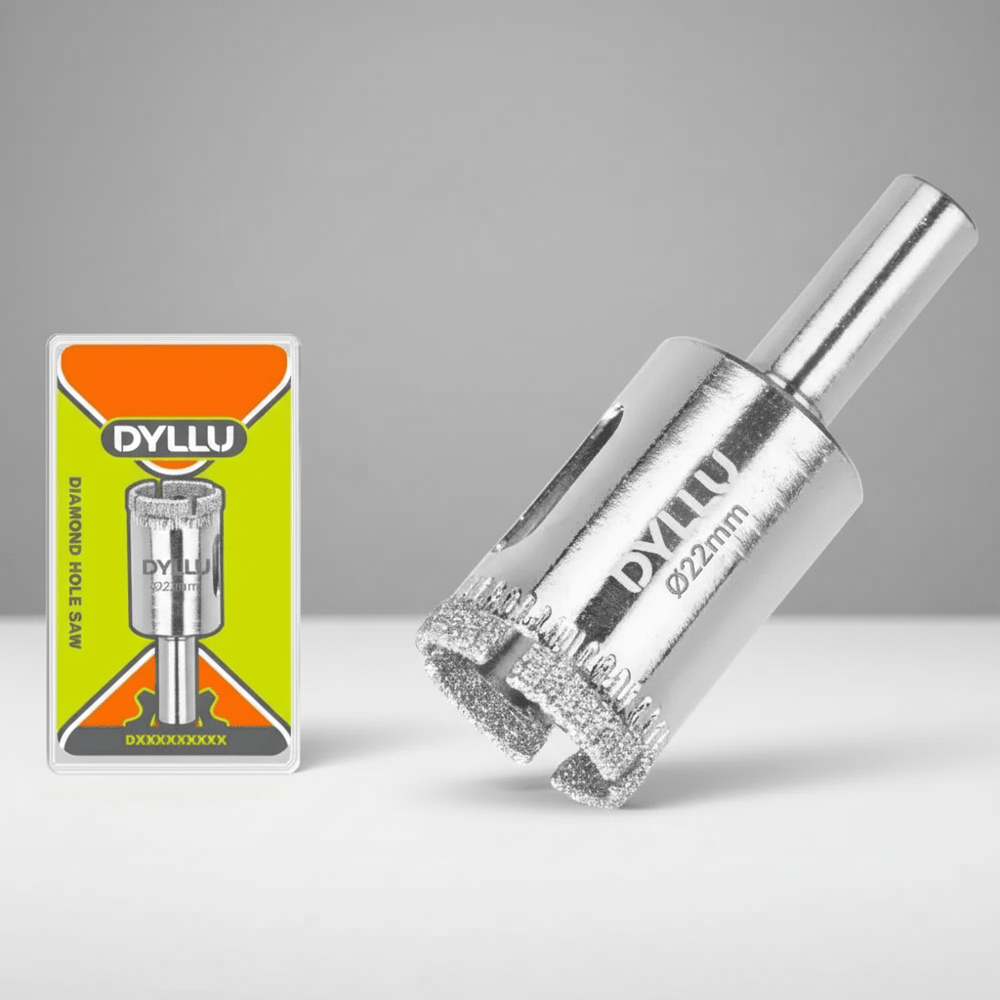 The Dyllu DTKJ7622 Diamond Hole Saw offers precise cutting for small openings in hard materials such as ceramic tile, porcelain, marble, and glass. Its compact 22 mm size makes it ideal for fine drilling tasks in plumbing, electrical, and fixture installations.