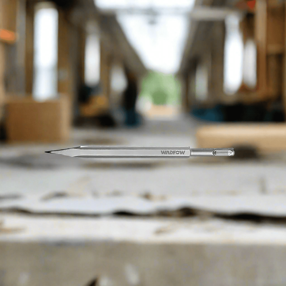 Break through concrete and masonry with precision using the Wadfow SDS Plus Chisel. Designed for heavy-duty demolition, this 14x250mm pointed chisel is crafted from chrome-vanadium steel for maximum durability and impact resistance. The sandblasted surface reduces friction, while the SDS Plus shank ensures secure compatibility with compatible rotary hammers. Ideal for cracking, breaking, and chipping tasks.