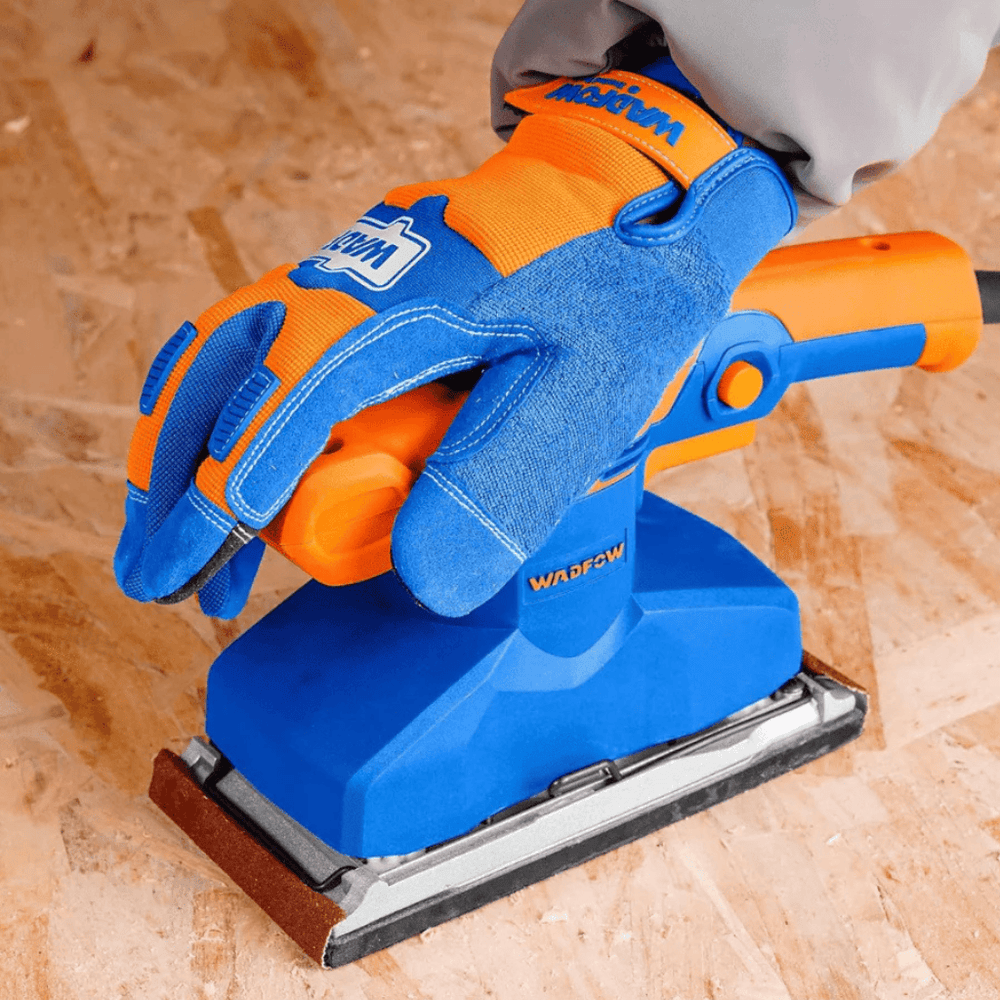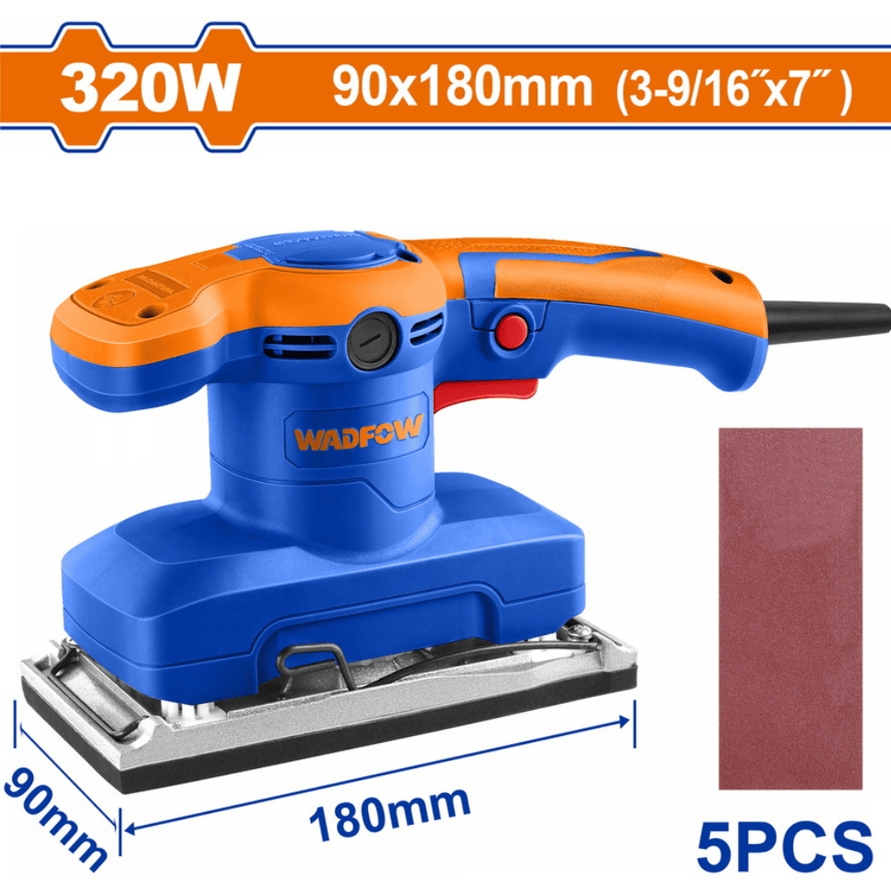Perfect your finishing work with the Wadfow Finishing Sander. Designed for precision and efficiency, this sander features a powerful 320W motor and a high no-load speed of 14000 RPM, ensuring smooth and swift material removal. The durable aluminum base (90x180mm) provides stability and longevity, while the included 5 sandpapers offer versatility for various surfaces. Ideal for woodworking, furniture refinishing, and DIY projects.