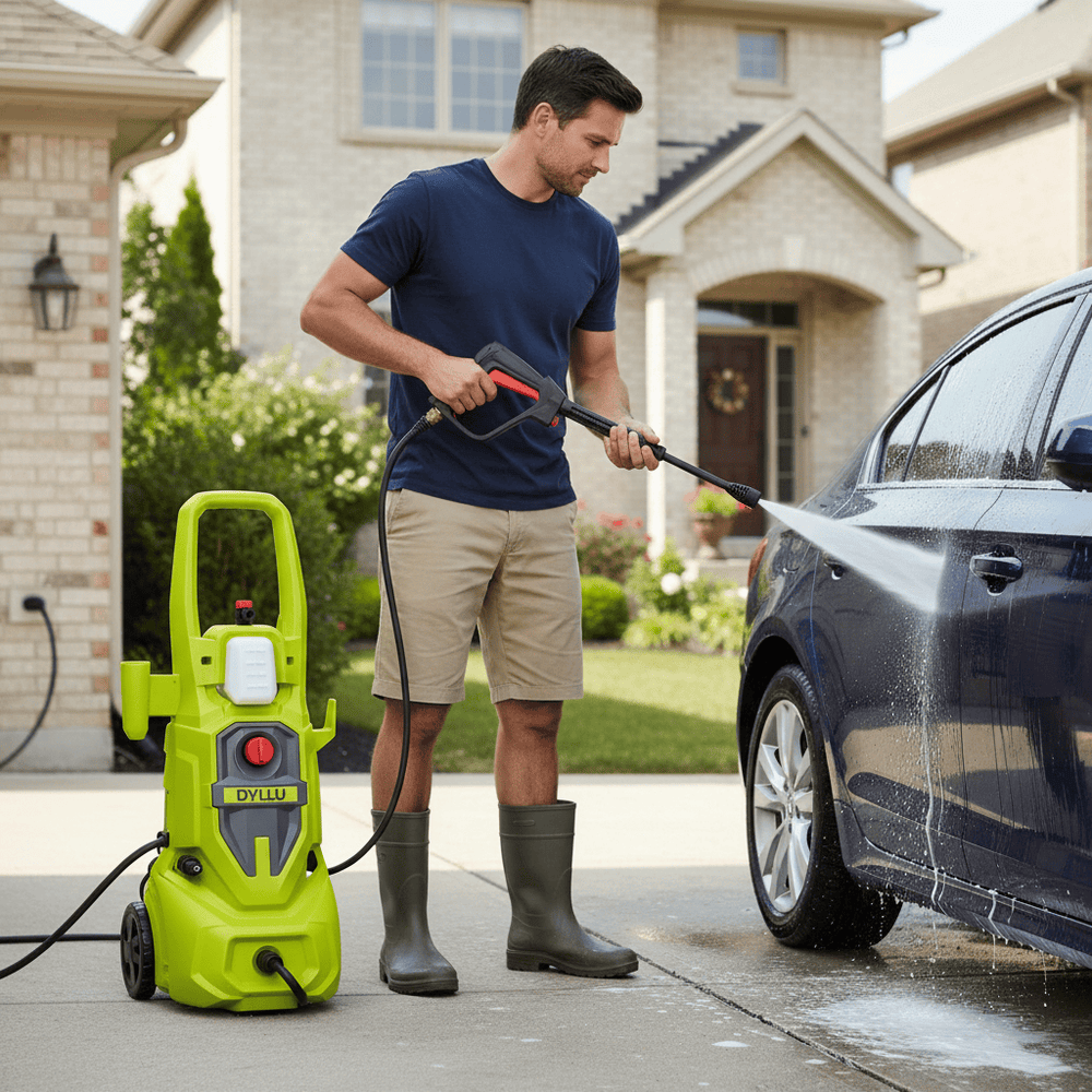 The Dyllu DTHP3A22 High Pressure Washer delivers powerful and efficient cleaning for homes, vehicles, and workshops. Powered by a 2200W carbon brush motor with durable aluminum wiring, it produces up to 160Bar (2320 PSI) pressure for removing tough dirt and grime. Featuring an auto stop system and strong water flow, it ensures safety, efficiency, and water savings.