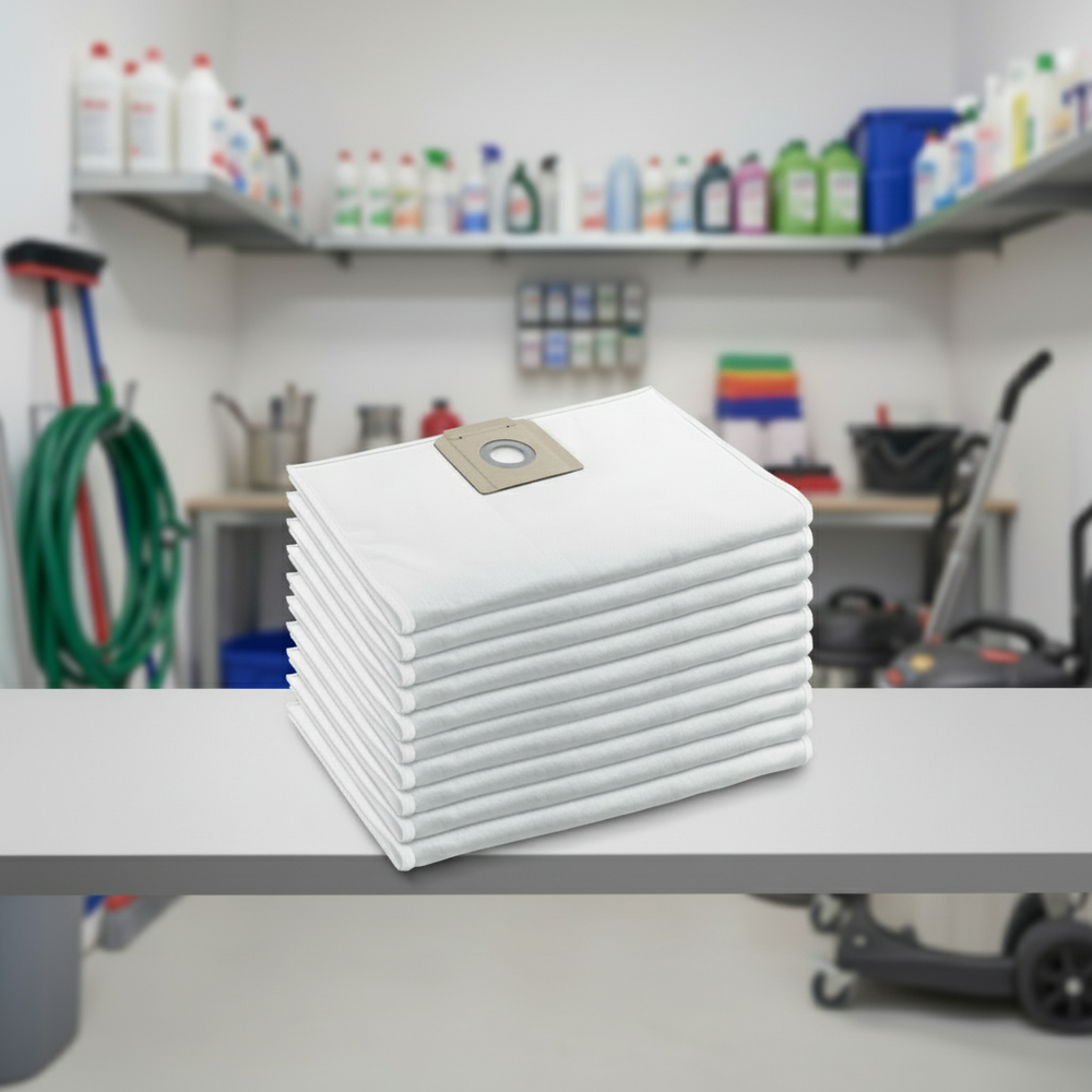 Restore optimal dust filtration and capacity to your Kärcher vacuum system with the Kärcher Fleece Filter Bag Set (Part No. 6.907-017.0, 10-pack). These premium, 3-ply fleece filter bags offer superior durability, dust retention, and suction performance compared to conventional paper bags.