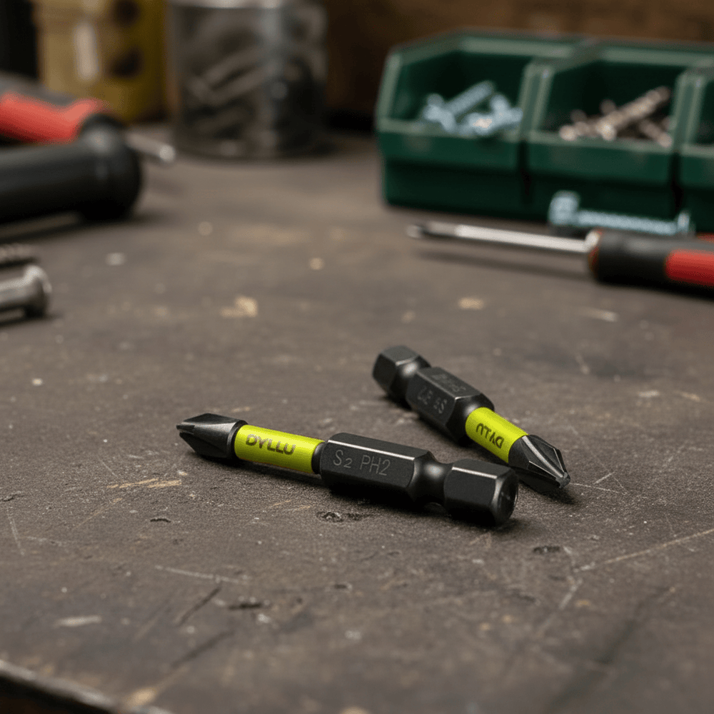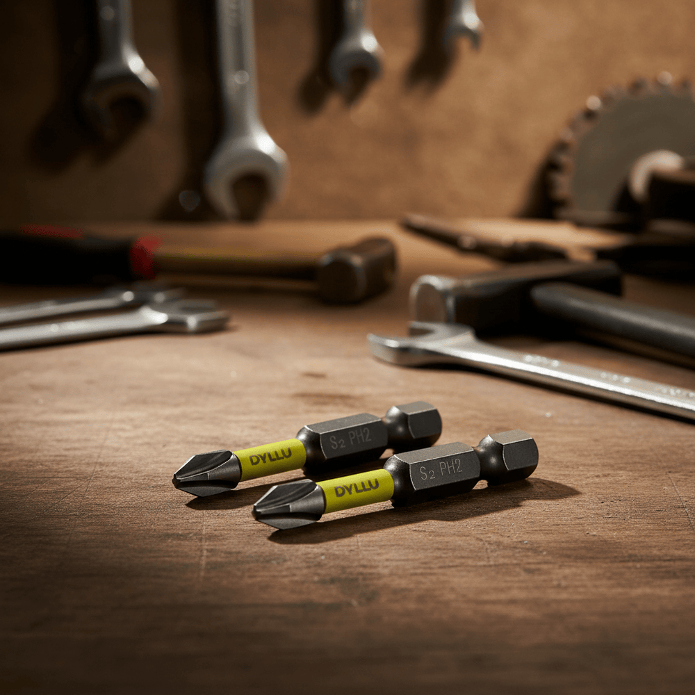 A professional-grade PH2 impact screwdriver bit set designed for durability and precision under heavy-duty use. Each 50mm bit features S2 industrial steel construction and advanced shock-zone technology, reducing tip breakage while ensuring efficient screw driving.