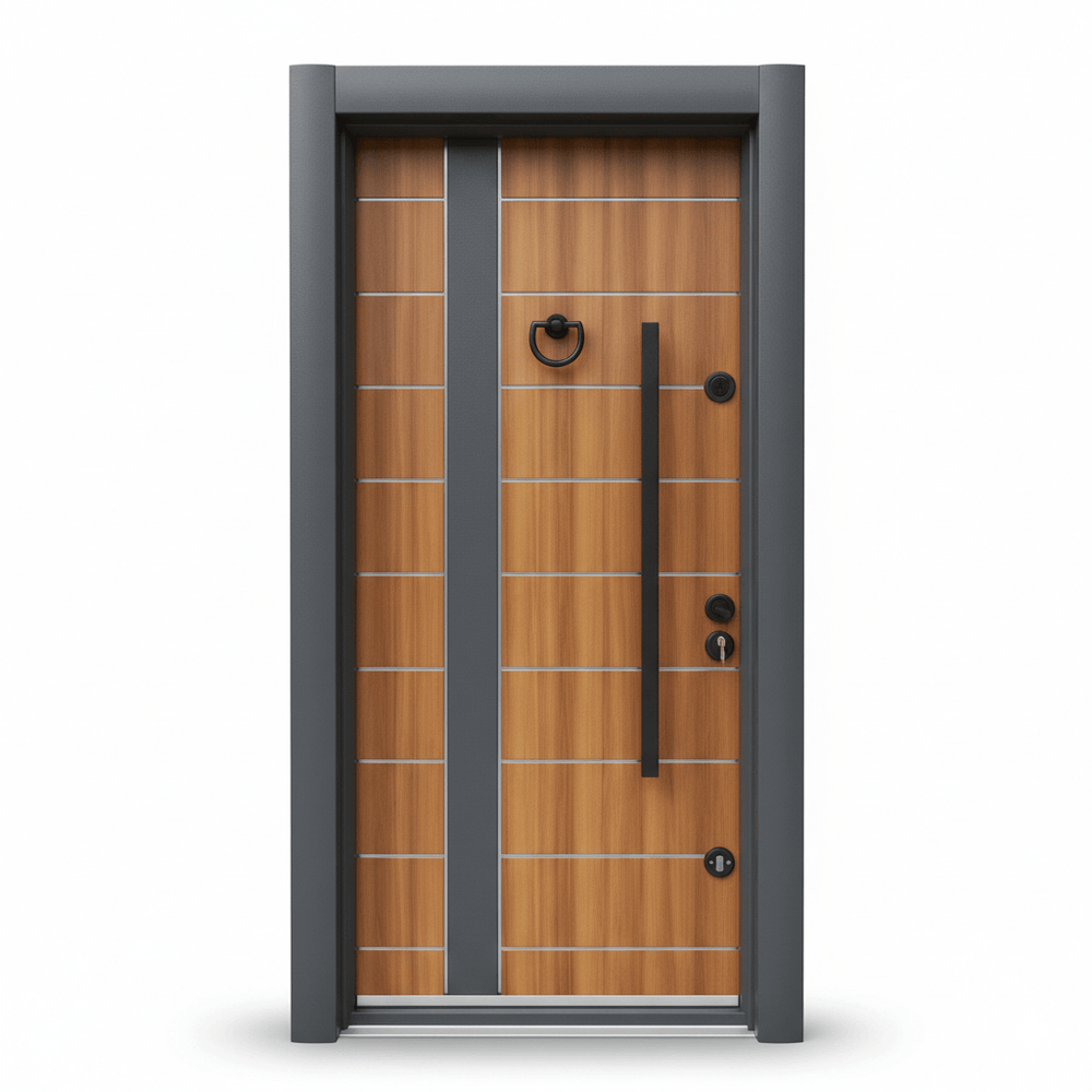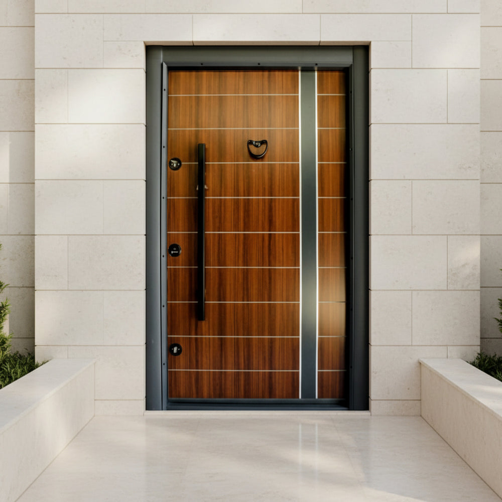 The three-point reinforced locking system secures the door across multiple contact points, improving resistance to forced entry. Fully waterproof and built for all-weather conditions, this model is suitable for main entrances where strength, performance, and refined aesthetics are required.