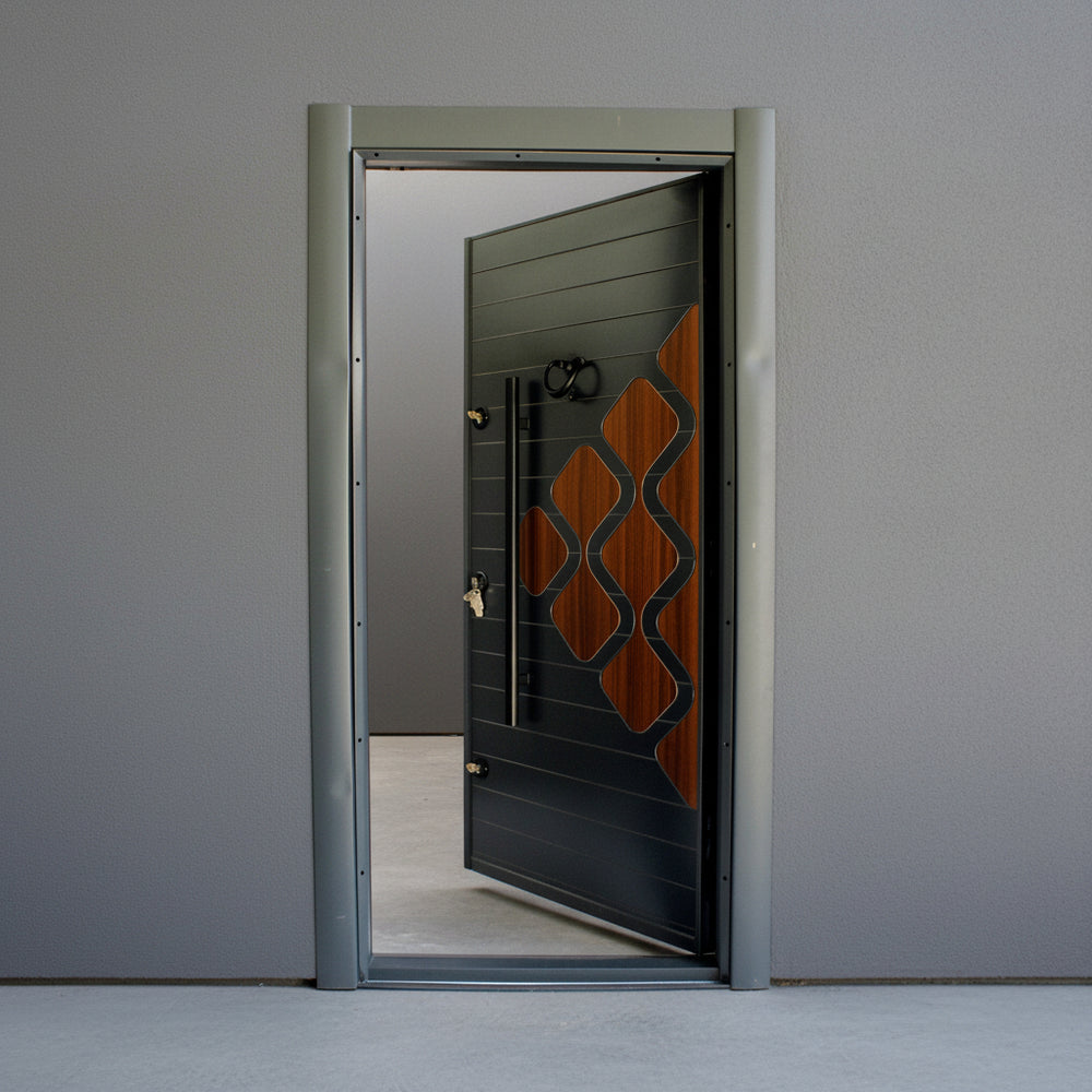 Fort Door Aluco-Board Security Door with Triple Lock System - Graphite Walnut Mosaic