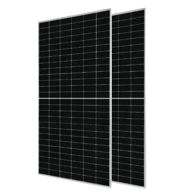 - 144 half-cut mono cells (11BB or 16/72 configuration depending on variant) reducing resistive losses and improving shade tolerance