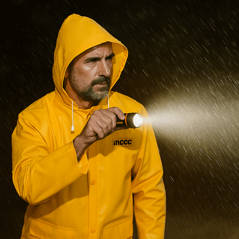 Stay dry, visible, and protected in any weather. The Rain-Ready Kit from Ingco is your ultimate wet-weather defense, combining industrial-grade rain boots, a high-lumen waterproof flashlight, and a durable rain suit. Whether you’re working on-site, commuting, or tackling outdoor adventures in the storm, this kit keeps you safe, dry, and ready for anything.