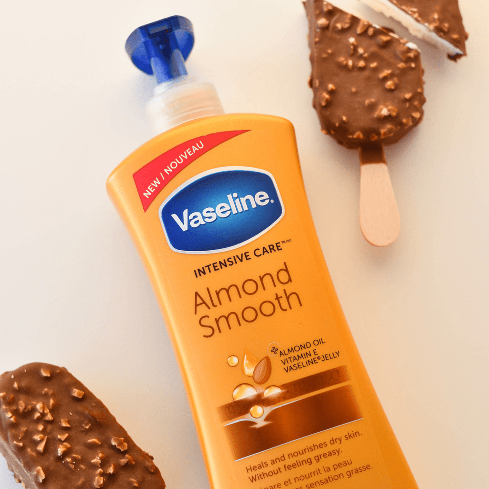 Pump or squeeze Vaseline Intensive Care Almond Smooth Lotion from the bottle and spread evenly across your body until absorbed. Apply daily for best results and healthier-looking skin.