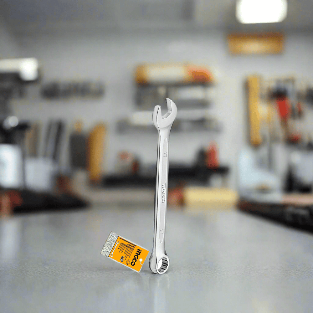 The Ingco 17'' Combination Spanner – HCSPA171 is built for strength and efficiency, designed from premium Cr-V steel to deliver lasting performance. With a 210mm length and a rust-resistant matt chrome-plated finish, it offers excellent grip and durability, making it an indispensable tool for tightening and loosening bolts or nuts in mechanical, construction, and household tasks.
