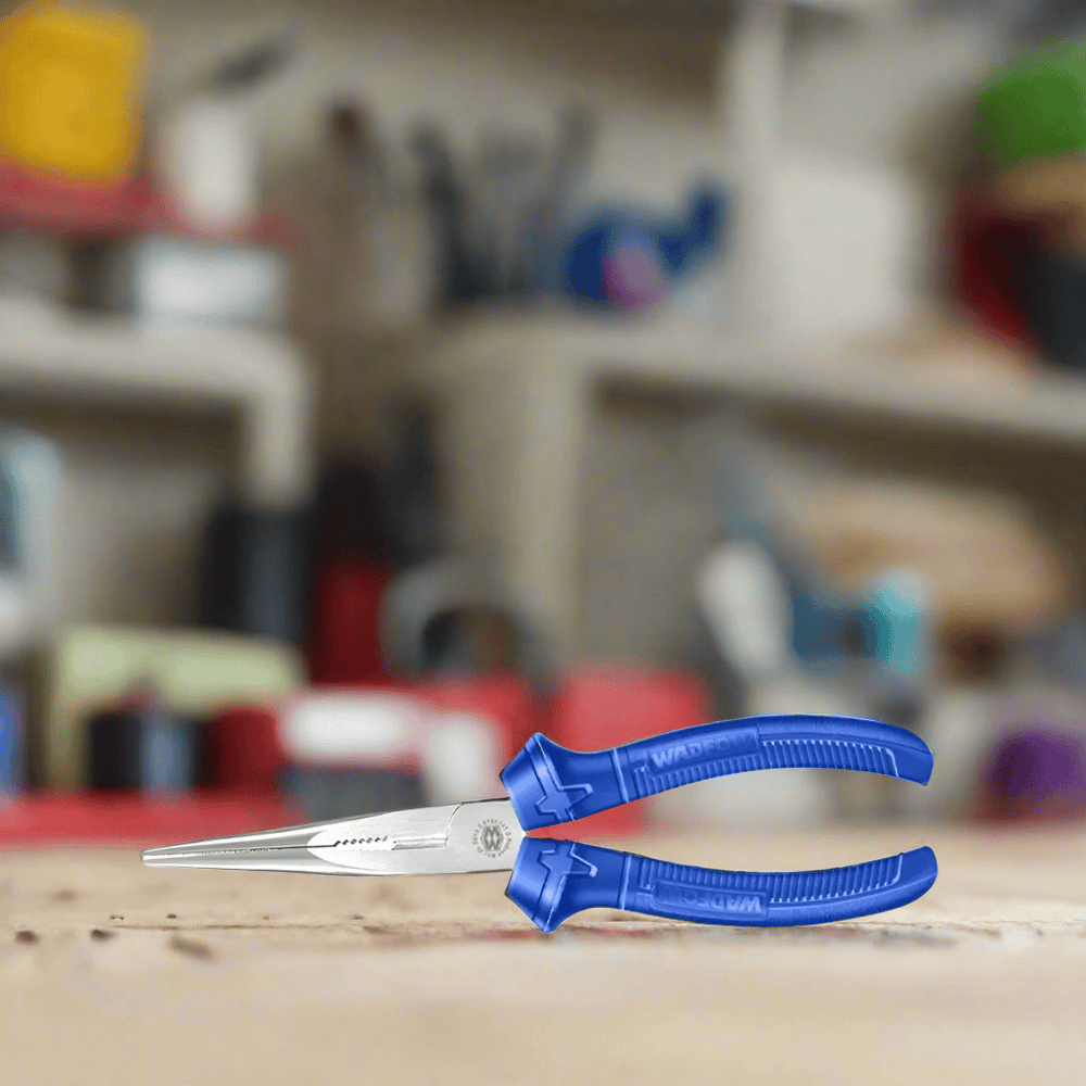 The Wadfow WPL2C28 8-inch long nose plier is crafted from high-quality carbon steel for strength and durability. Its polished surface with anti-rust protection ensures long-lasting performance, while the comfortable single-color handle provides a firm grip for precision work. Ideal for gripping, bending, and cutting in tight spaces.