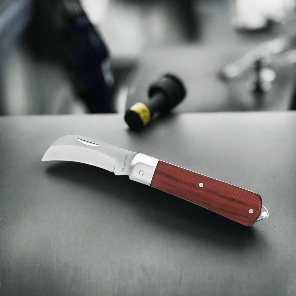 Streamline your cable stripping tasks with the Wadfow Cable Stripping Knife. Featuring a specialized bent head design, this knife ensures precise and safe stripping of cables without damaging conductors. Crafted from special steel with a 3mm thickness, it offers durability and resistance to wear. The comfortable wooden handle provides a secure grip, reducing hand fatigue during prolonged use. Ideal for electricians and technicians.