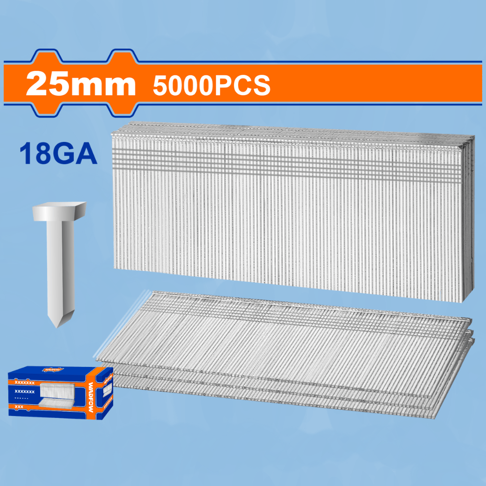 Get professional results with the Wadfow 25mm Brad Nails, crafted for smooth, secure fastening with minimal splitting. Ideal for finish carpentry, cabinetry, and trim work, these GA18 brad nails work seamlessly with models WBN2540, WBN1550, WBN3530, and WBN3532.
