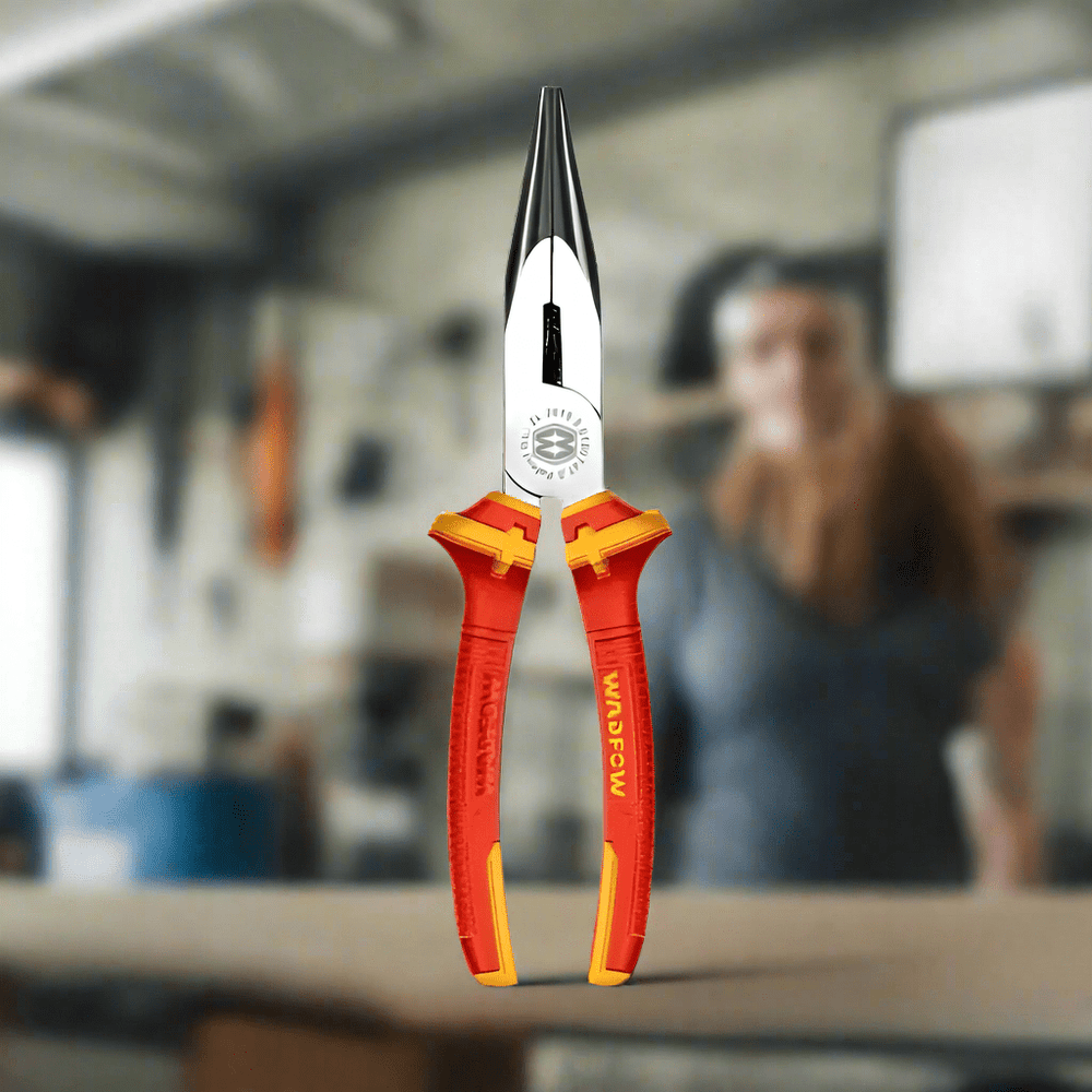 The Wadfow 6" Insulated Long Nose Plier (Model: WPL2936) is designed for high-precision tasks in electrical work, ensuring both safety and efficiency. The insulated handles offer protection from electrical shocks, making it ideal for working with live wires and other electrical components. Its slender, long nose allows easy access to tight spaces, and the high-quality steel construction ensures durability and precision. Perfect for professionals and DIY enthusiasts who need reliability and safety in their tools.