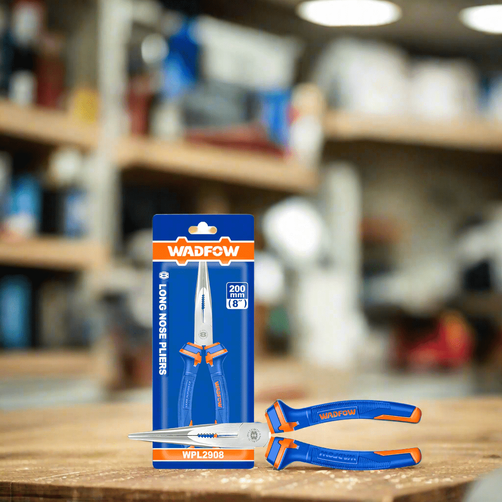 Handle precise gripping, bending, and cutting tasks effortlessly with the Wadfow WPL2908 Long-Nose Plier. Crafted from durable polished carbon steel and finished with anti-rust oil, this 200 mm tool delivers long-lasting performance. The dual-color ergonomic grip ensures comfort and control, while the built-in leaf-spring mechanism enables smooth, one-handed operation. Hanger-ready packaging makes it perfect for workshops, toolkits, or retail display.