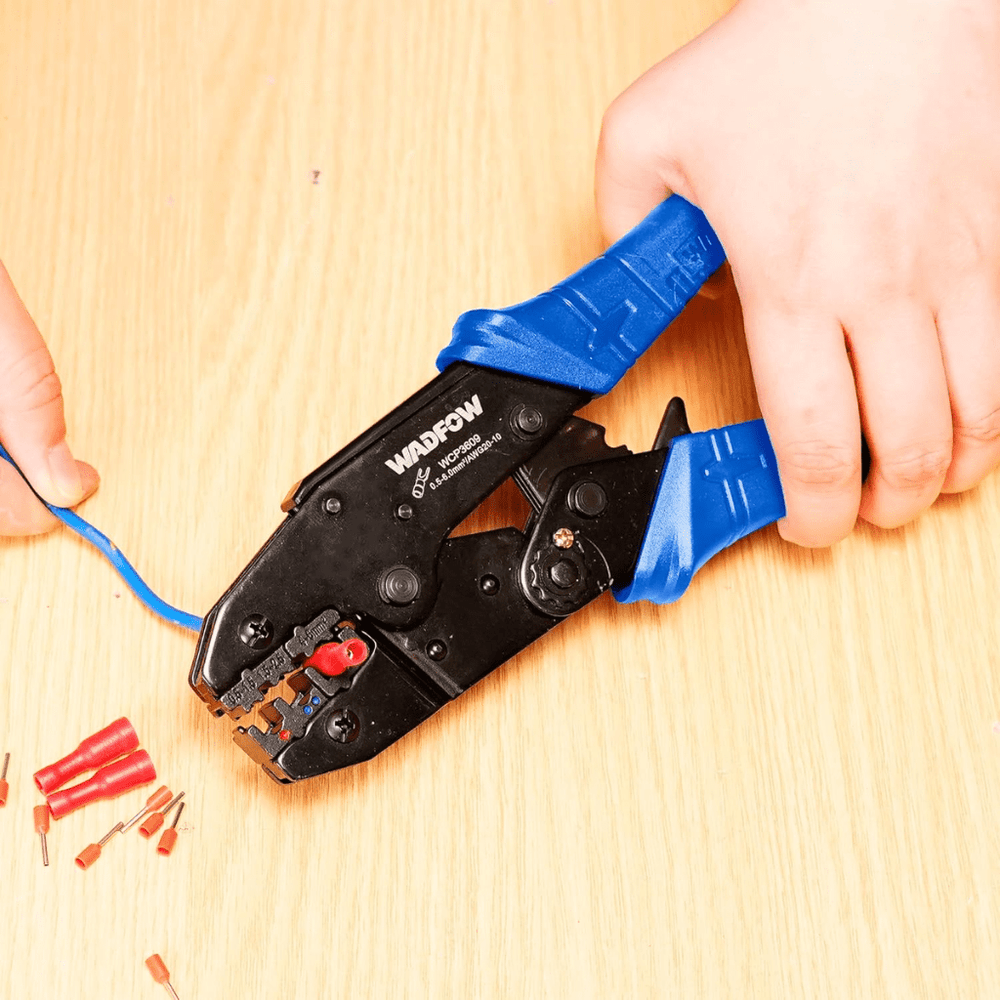 Ensure secure, professional-grade crimps with the Wadfow WCP1609 Ratchet Crimping Plier. This 9″ plier features a ratchet mechanism and adjustable pressure control, allowing precision crimps on a variety of non-insulated terminals and butt connectors. Built with a unique ABS ergonomic handle for comfort and control, it handles 0.5–6 mm² (AWG 20–10) wires with ease. Ideal for electrical work, automotive repairs, and DIY projects—this tool delivers reliable performance every time.