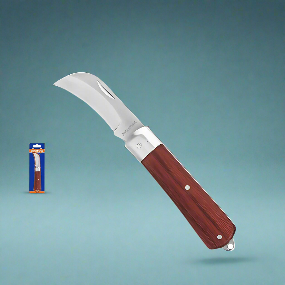 Streamline your cable stripping tasks with the Wadfow Cable Stripping Knife. Featuring a specialized bent head design, this knife ensures precise and safe stripping of cables without damaging conductors. Crafted from special steel with a 3mm thickness, it offers durability and resistance to wear. The comfortable wooden handle provides a secure grip, reducing hand fatigue during prolonged use. Ideal for electricians and technicians.