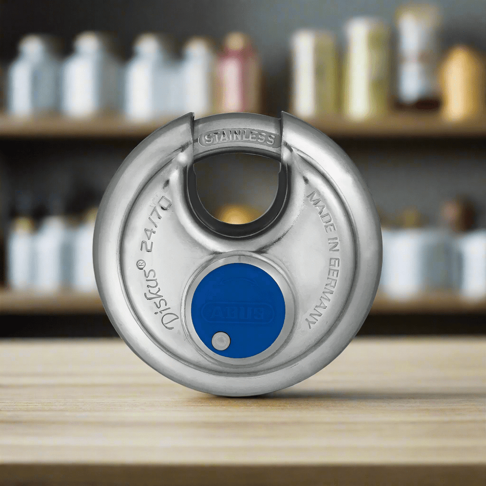 ABUS 70mm Diskus Stainless Steel Padlock - 24IB/70 is backordered and will ship as soon as it is back in stock.