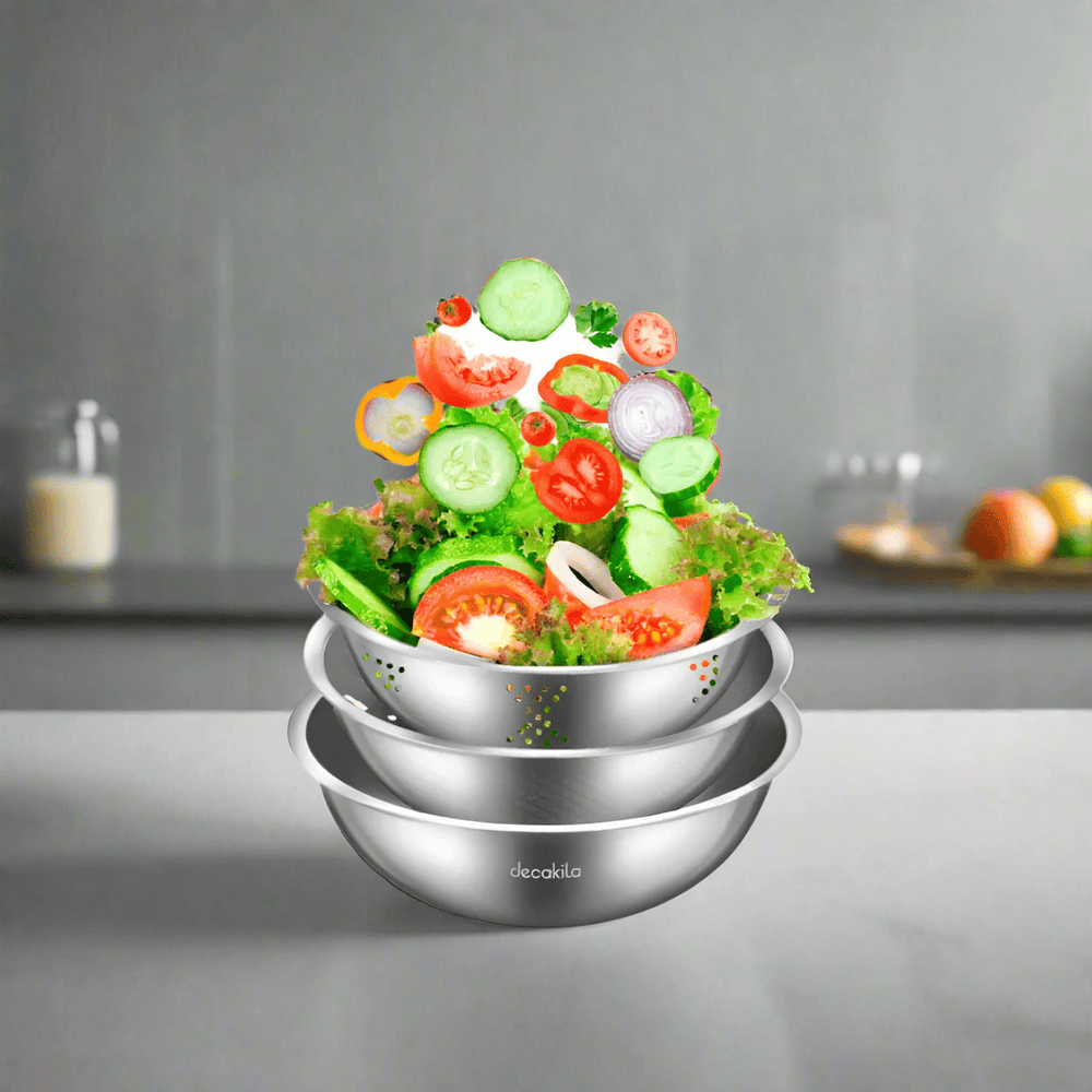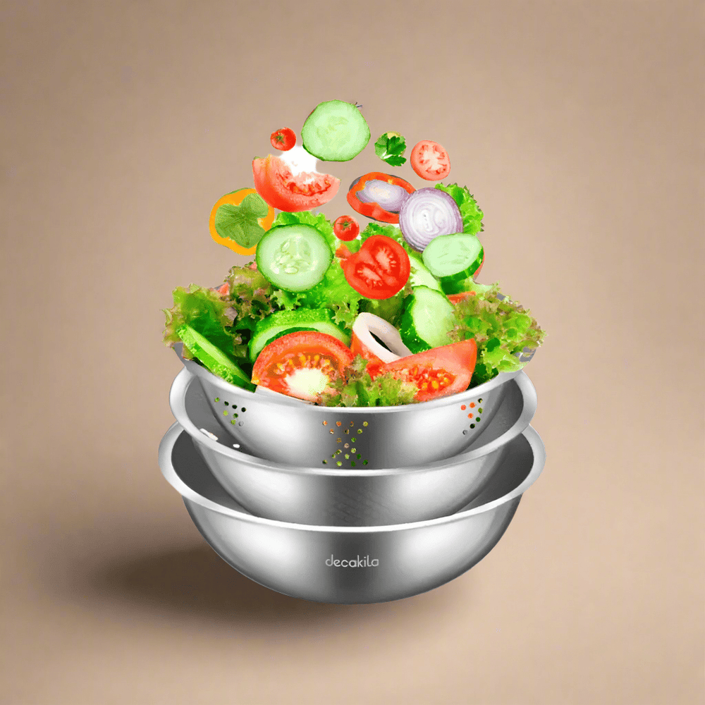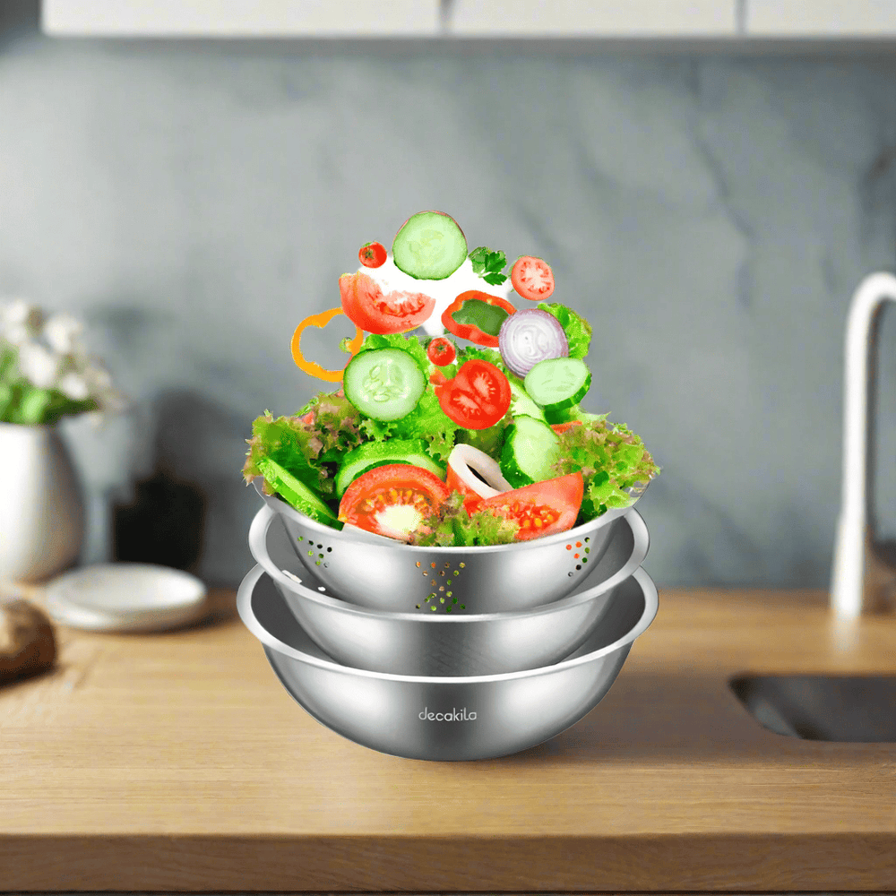 Upgrade your kitchen essentials with this versatile 3-piece stainless steel basin set. Crafted from durable SUS201 stainless steel with a 0.4mm thickness, it features a 22cm rice washing sieve, a 24cm fruit and vegetable basin, and a 26cm washbasin. Each piece comes with an elegant inner and external mirror polish, combining practicality with style.