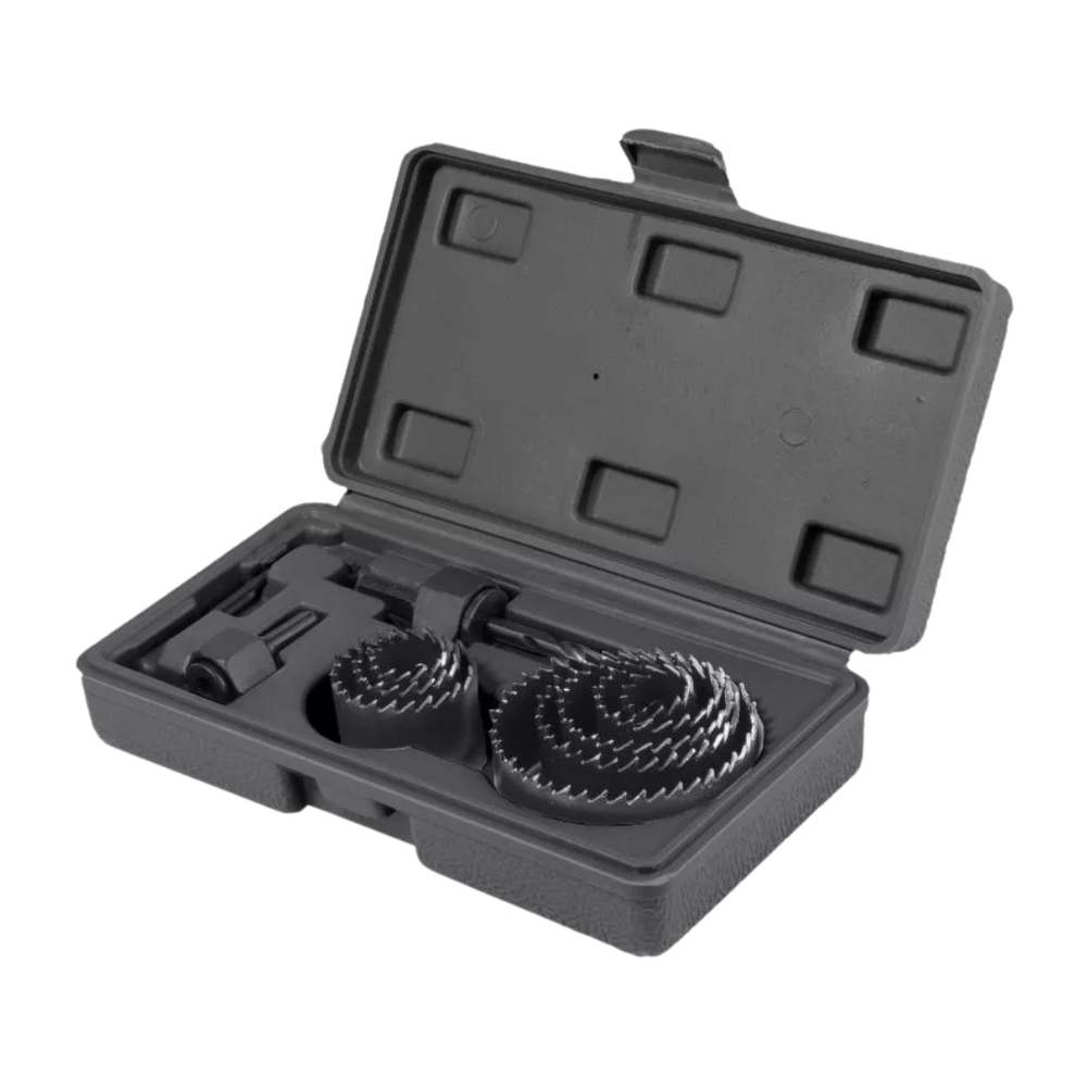 With a complete range of eight popular diameters (19 mm to 64 mm), plus two arbors and a hex key, you’re ready for almost any standard-hole application. All pieces are stored in a tough, compact plastic case to stay organized and transport easily between job sites or your workshop.