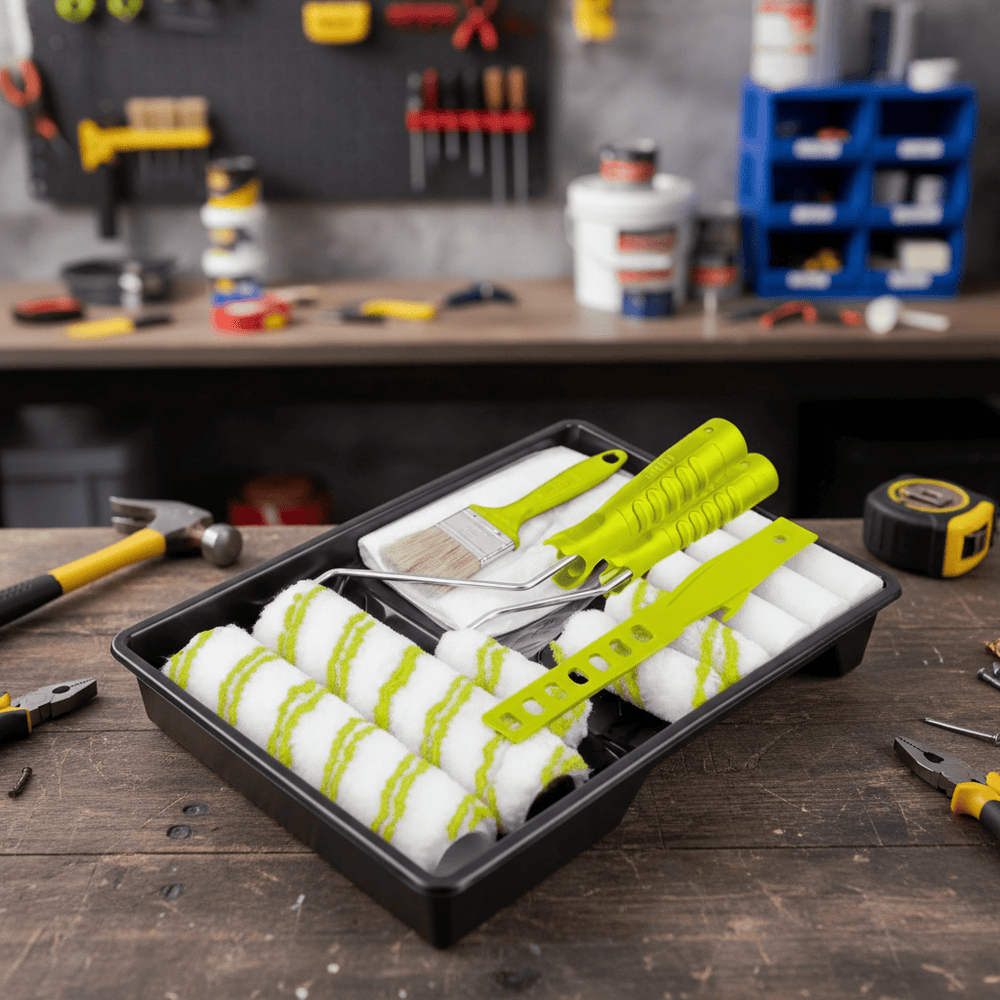 The Dyllu 14-Pieces Cylinder Brush Set is the perfect painting kit for achieving smooth, professional finishes on interior walls. Designed for efficiency and convenience, this set includes a range of polyester and foam roller covers, brushes, and accessories to handle multiple surfaces and painting tasks. Its ergonomic design ensures comfort and precise control during use. Ideal for DIY enthusiasts, painters, and contractors looking for a versatile, ready-to-use solution.