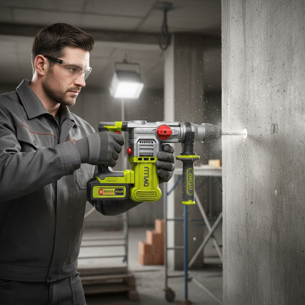 Compact yet strong, this Dyllu hammer drill brings flexibility, reliability, and mobility to contractors, DIYers, and maintenance crews — a smart choice for building, renovation, or general masonry projects.