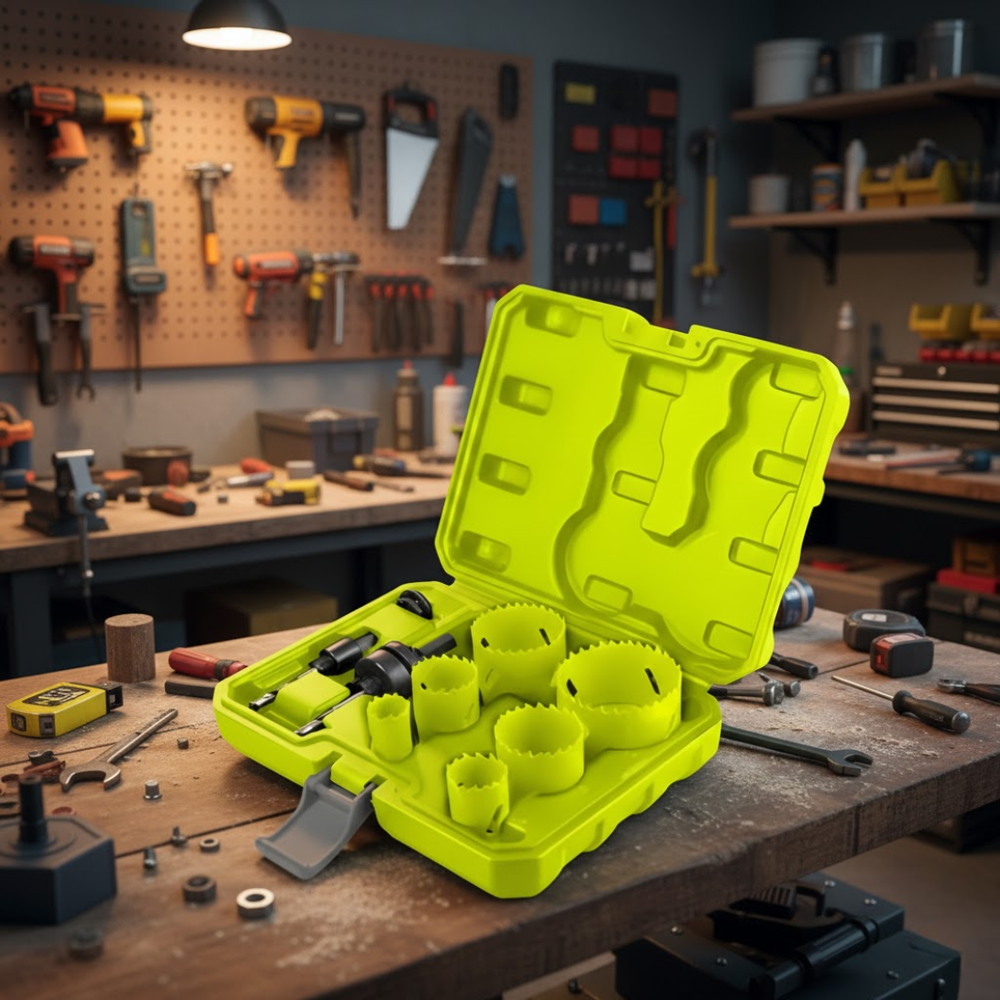 A must-have for professional electricians, HVAC technicians, and DIY installers, the Dyllu 9-Piece Electrician’s Bi-Metal Hole Saw Set (DTKJ3492) delivers reliable, high-performance cutting for holes in metal panels, electrical boxes, and wall surfaces. This versatile kit combines durable bi-metal saw cups, a sturdy arbor, and a pilot drill — all housed in a compact, organized case for easy transport and storage.