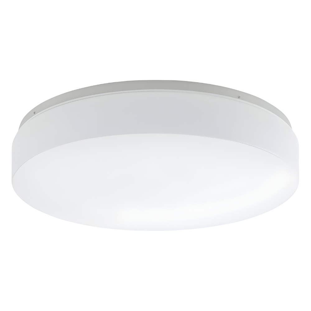A modern integrated LED ceiling light featuring adjustable white light from warm to cool tones. With a 24W power output and 480mm diameter, it provides efficient, customizable illumination for living rooms, kitchens, and bedrooms. The white plastic housing offers a clean, contemporary look that blends seamlessly with various interior styles.