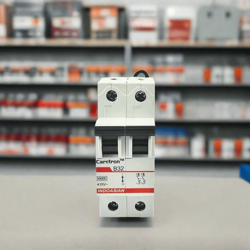 Elevate your electrical safety with the Indoasian Caretron Double Pole C-Curve MCB. Designed for complete circuit isolation, this ISI-marked MCB range (6A to 63A) provides reliable 6kA protection for both residential and industrial applications. Featuring IP20 protected bi-connect terminals and clear technical markings, it ensures easy installation and maximum safety. The double pole design offers complete phase and neutral isolation for enhanced protection.