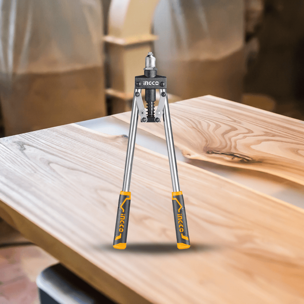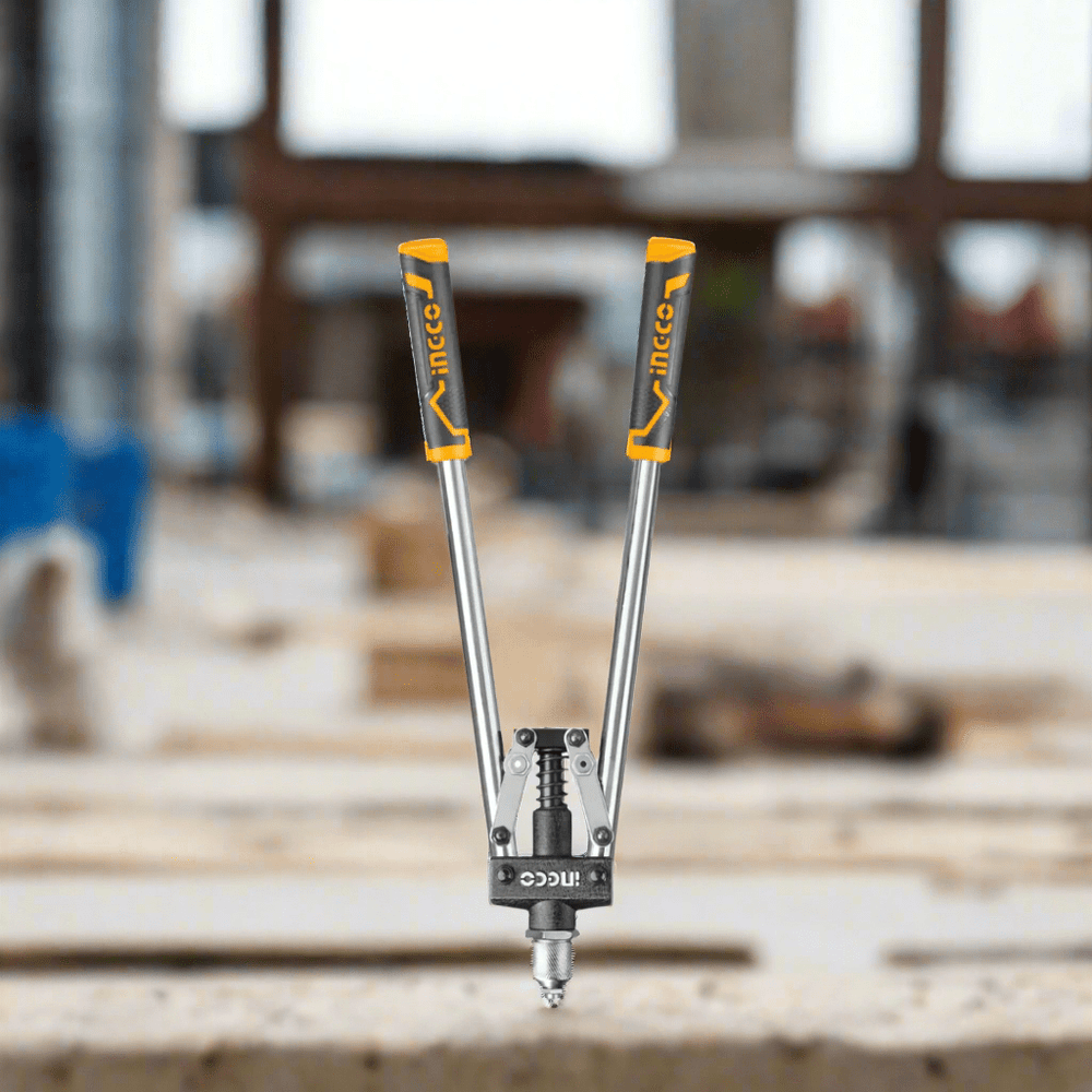 The Ingco 17" Hand Riveter - HR171 is a heavy-duty riveting tool designed for maximum leverage and effortless operation. Perfect for fastening metal, aluminum, and other tough materials, this long-arm riveter is ideal for both industrial and DIY applications.